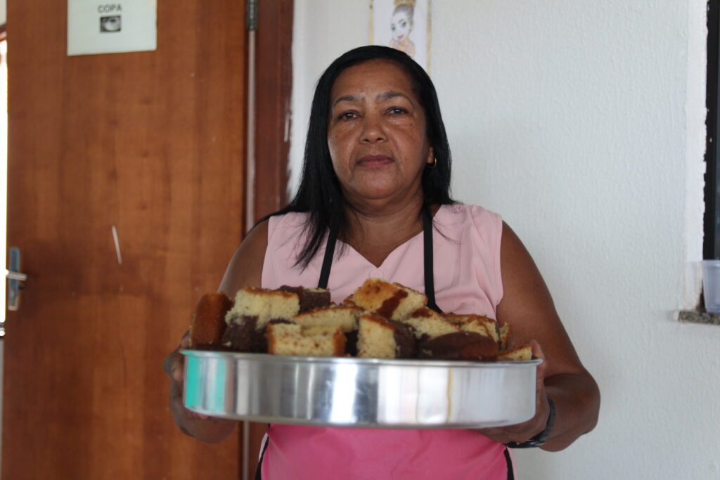 A servidora do Cras, Domingas Rosa Pereira, levantou cedo para iniciar seus serviços no Centro de Referência, local onde aconteceu o evento. Com sorriso no rosto que traz a marca do trabalho duro na infância, ela não escondia a alegria em estar fazendo parte da equipe que cuidou do evento. “Hoje o dia é especial, principalmente, por eu ser mulher mãe. A gente está feliz em poder estar ajudando na festa das mulheres. Hoje eu estou também comemorando meu aniversário, e não tem presente melhor do que estar trabalhando, pois lutamos tanto para conseguir o direito de trabalhar”, comemora dona Domingas.