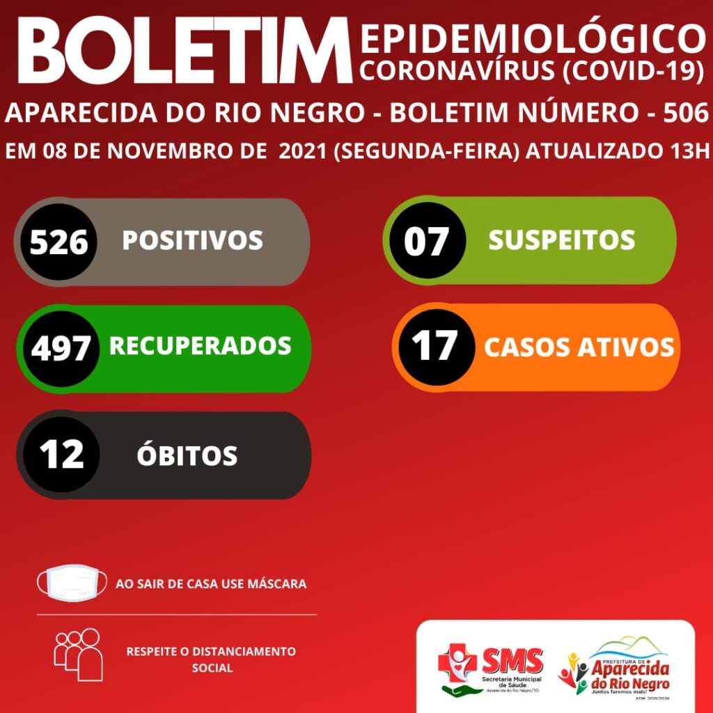 A Secretaria Municipal de Saúde de Aparecida do Rio Negro publicou o Boletim Epidemiológico nesta segunda-feira, 8, contabilizando 17 casos ativos e sete suspeitos.