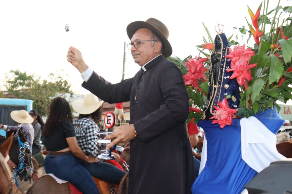 A cavalgada teve à frente a imagem de Nossa Senhora Aparecida no carro conduzido pelo administrador paroquial, padre José Barbosa.