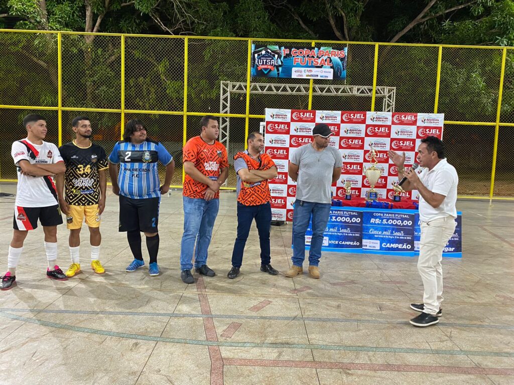 Depois de disputas acirradas, partidas com a presença de muita torcida e determinação dos atletas, a 1ª Copa Paris de Futsal foi encerrada nesta quarta-feira, 12, com os jogos da terceira colocação e grande final. A competição é uma iniciativa da Prefeitura de Aparecida do Rio Negro, por meio da Secretaria Municipal de Juventude, Esporte e Lazer, sendo a primeira a ser realizada no Ginásio Marilon Veloso após a reinauguração do local, no aniversário da cidade.