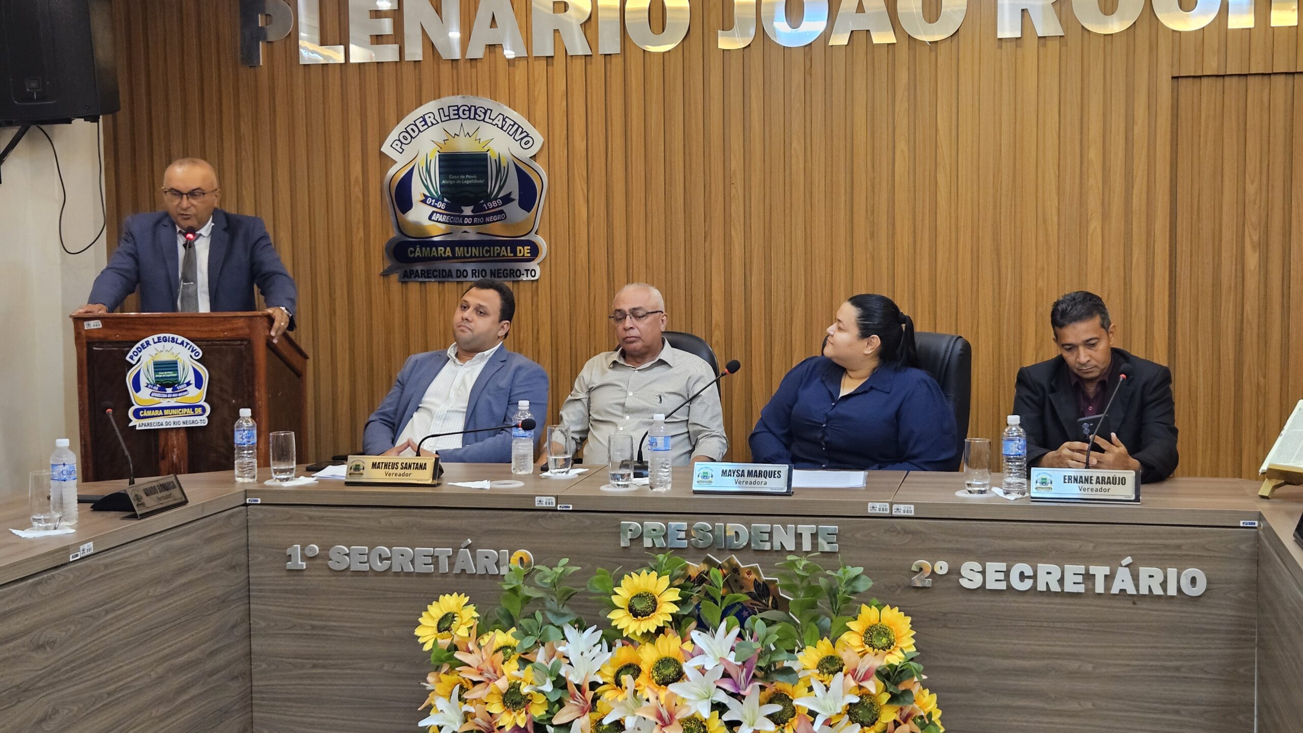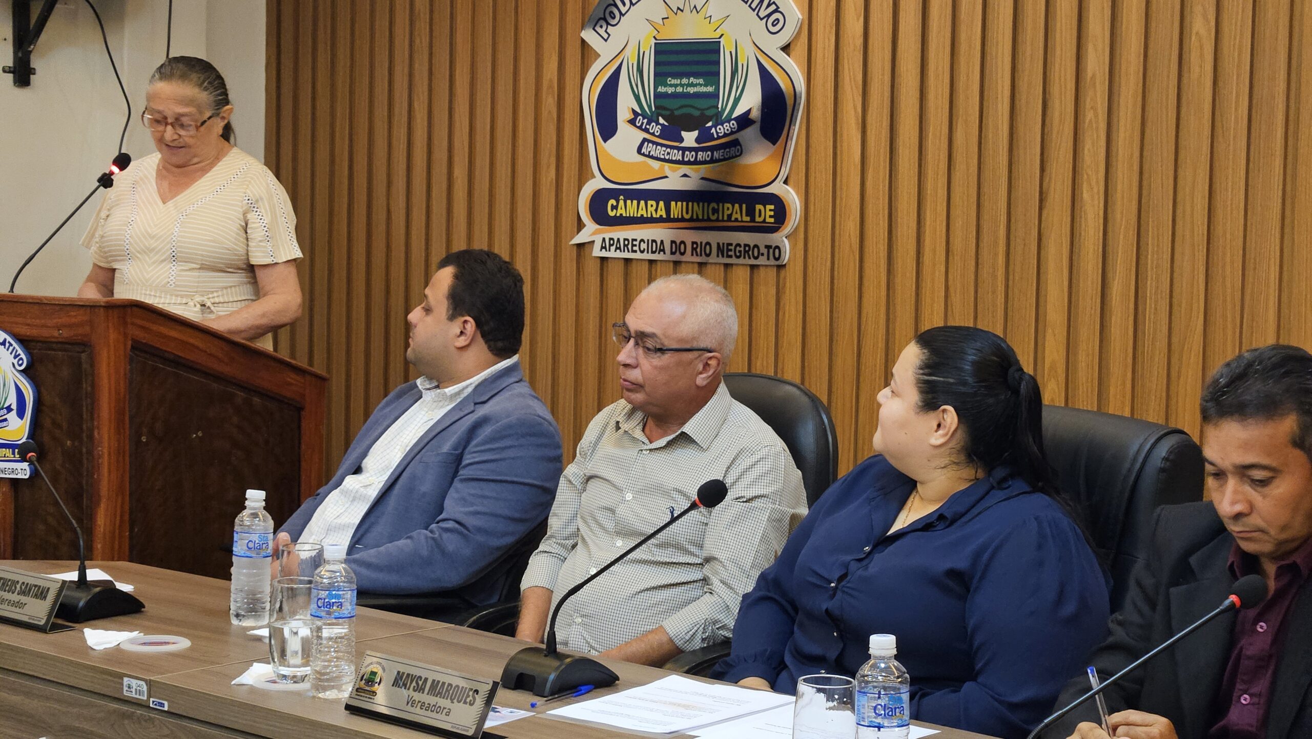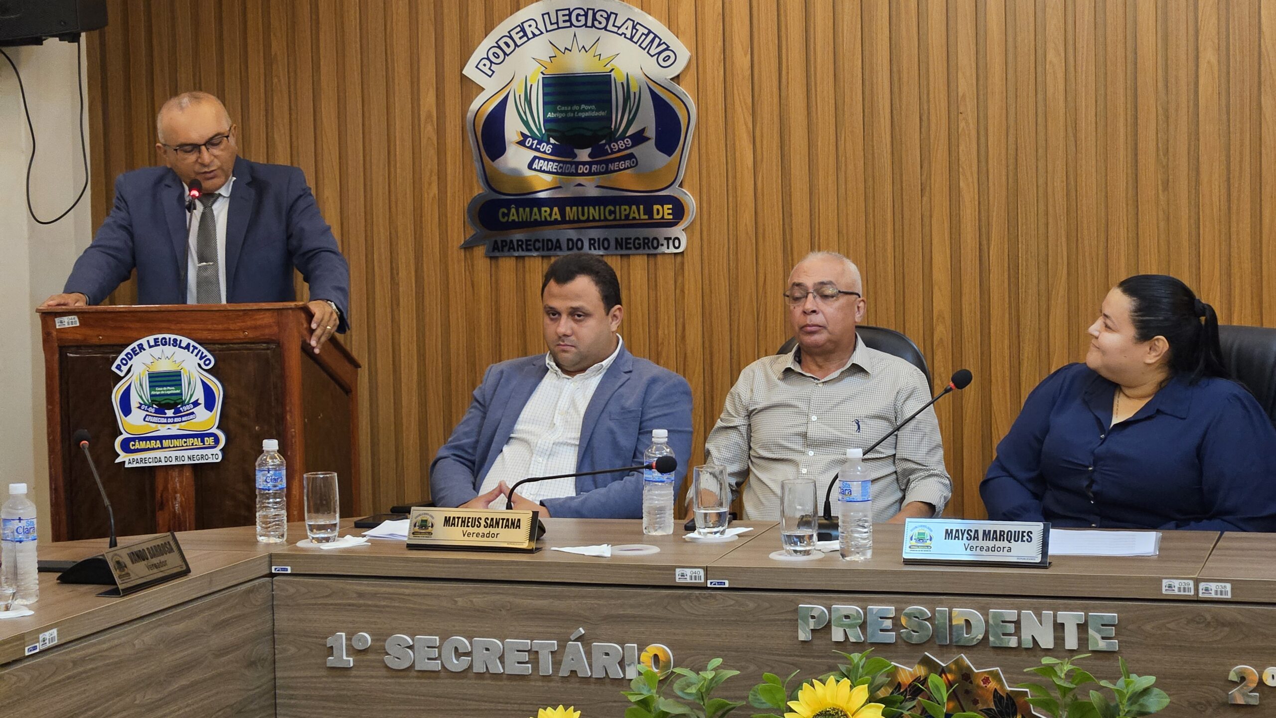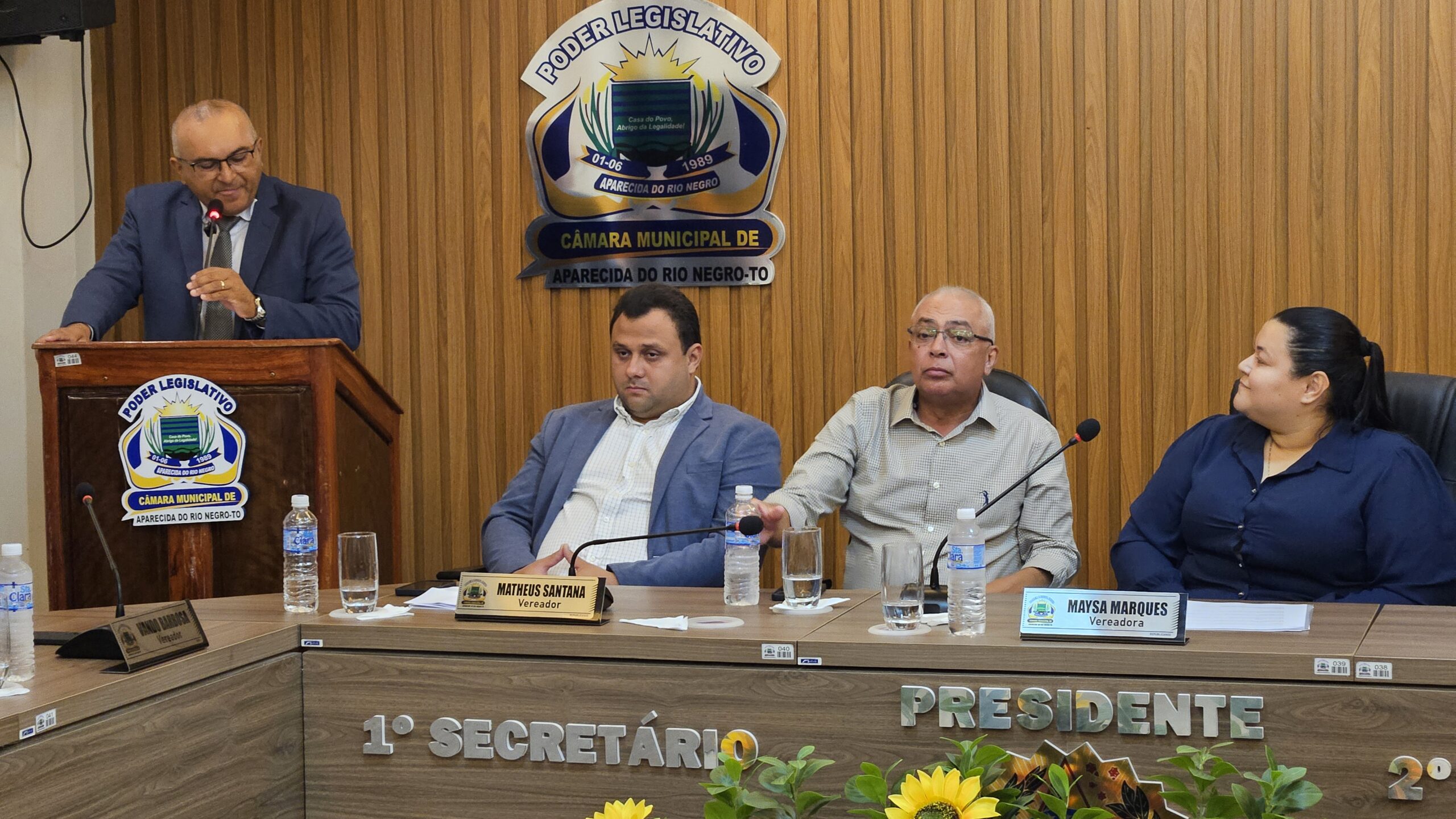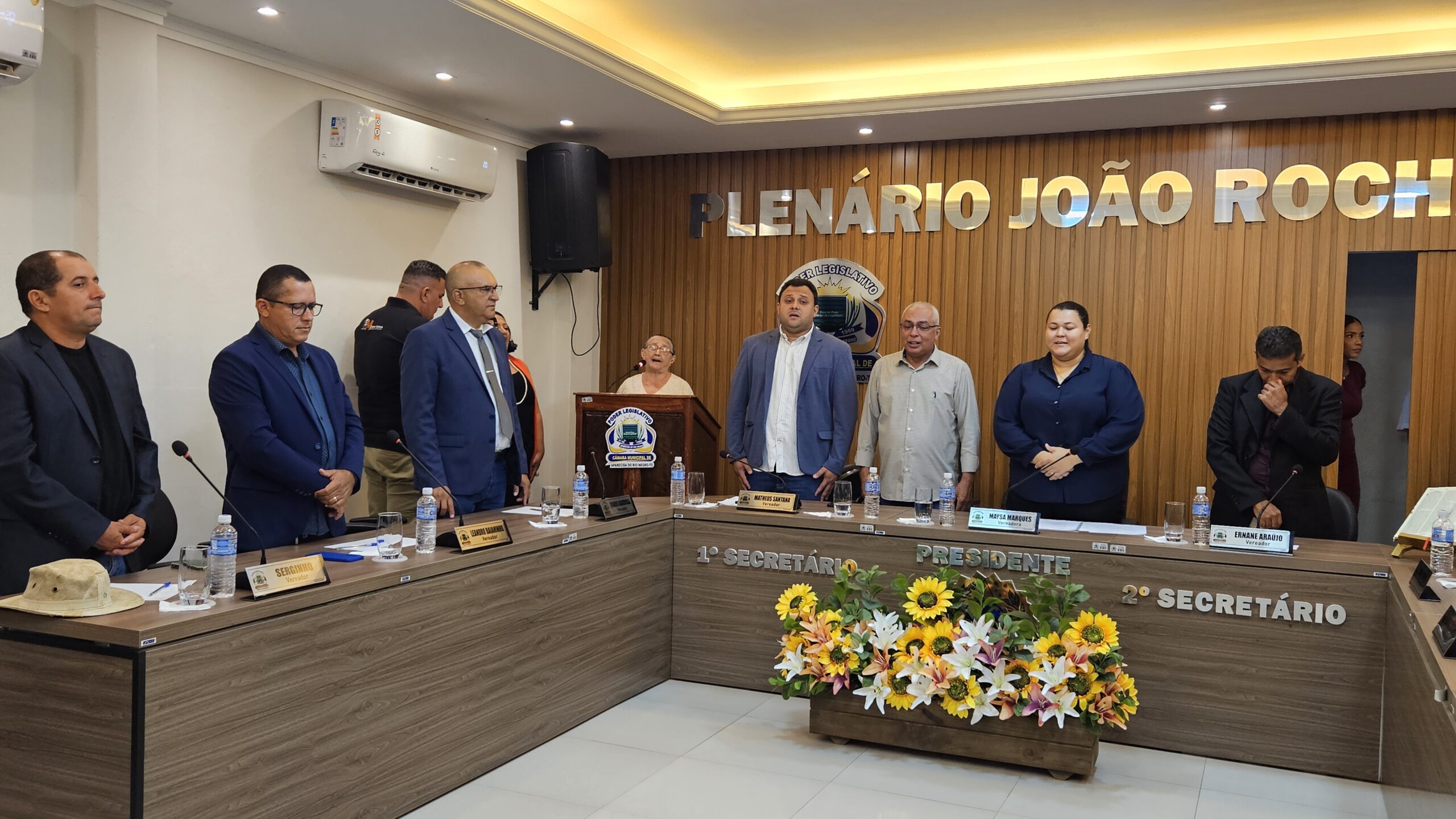A noite teve início com a passagem de posse realizada pelo presidente anterior, Matheus Santana, à nova presidente. Após a execução do Hino Nacional Brasileiro, a autora e ex-vereadora Madalena Carvalho cantou o Hino Municipal, em um momento de grande emoção. Em um discurso afirmativo e marcante, ela destacou o quanto a posse da vereadora Maysa representa força e determinação.