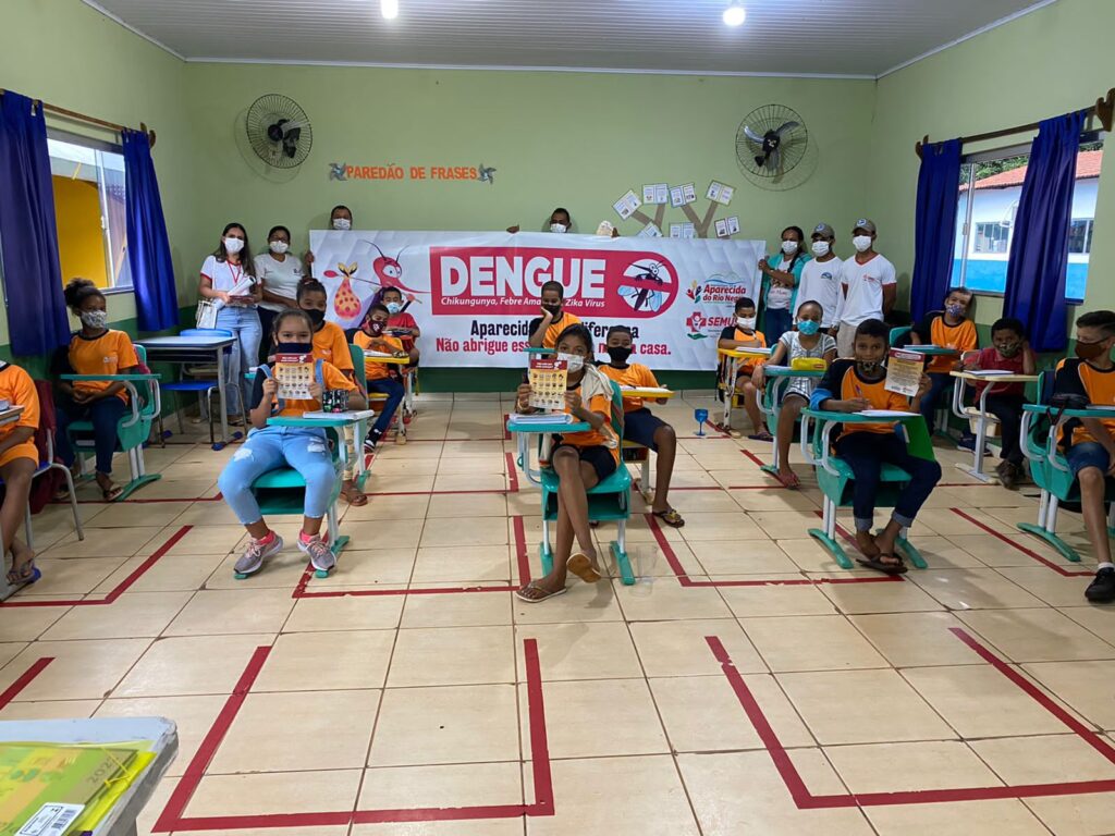A equipe de Saúde de Aparecida do Rio Negro esteve nas escolas do município promovendo a conscientização de combate ao mosquito Aedes aegypti, abordando o tema “Aparecida faz a diferença: não abrigue esse problema na sua casa”