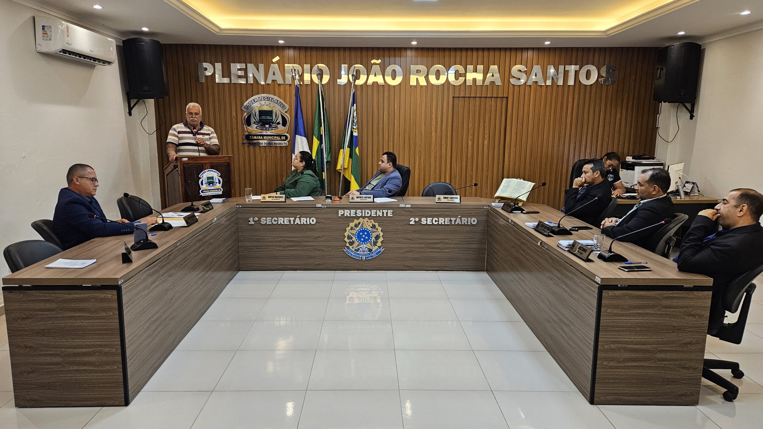 A Câmara de Vereadores de Aparecida do Rio Negro realizou, nesta terça-feira, 2 de dezembro, mais uma sessão para discutir demandas em andamento e apresentar propostas voltadas ao desenvolvimento do município. Conduzida pelo presidente Matheus Santana, a reunião contou com a presença dos parlamentares Maysa Marques, Ernane Araújo, Assis Coutinho, Ratinho Barros e Leandro Guedes.