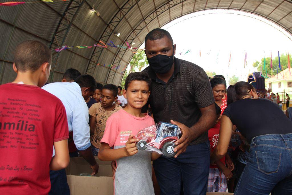 A criançada se divertiu muito com os brinquedos montados na Quadra Municipal Gleydson Castro Fernandes: pula-pula, tobogã, casinha de bolinha, escorregador e muitos outros. Todas as crianças que participaram do evento receberam presentes. O prefeito Leandro Soares esteve em contato com os pequenos e desejou um feliz Dia das Crianças a cada um.