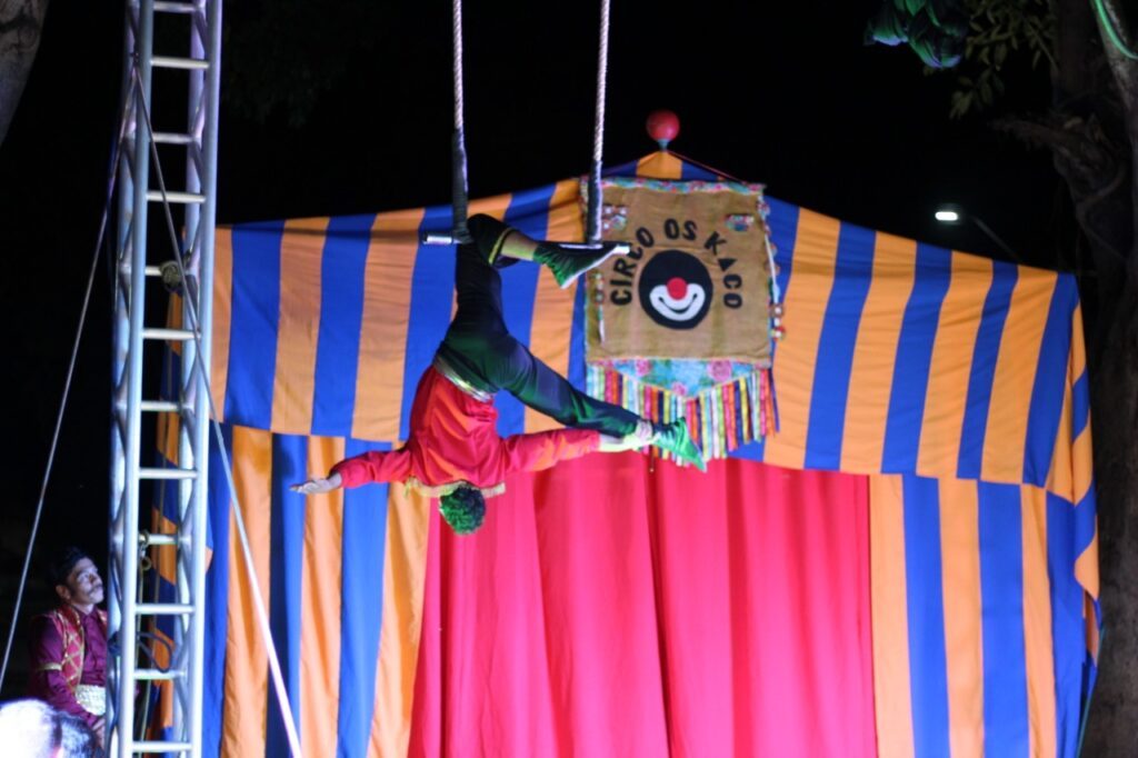 Já no sábado, 25, a exposição fotográfica teve sequência, juntamente com os brinquedos infláveis para as crianças. A noite foi marcada pelo espetáculo “Intervencirco”, com a Companhia Os Kaco.