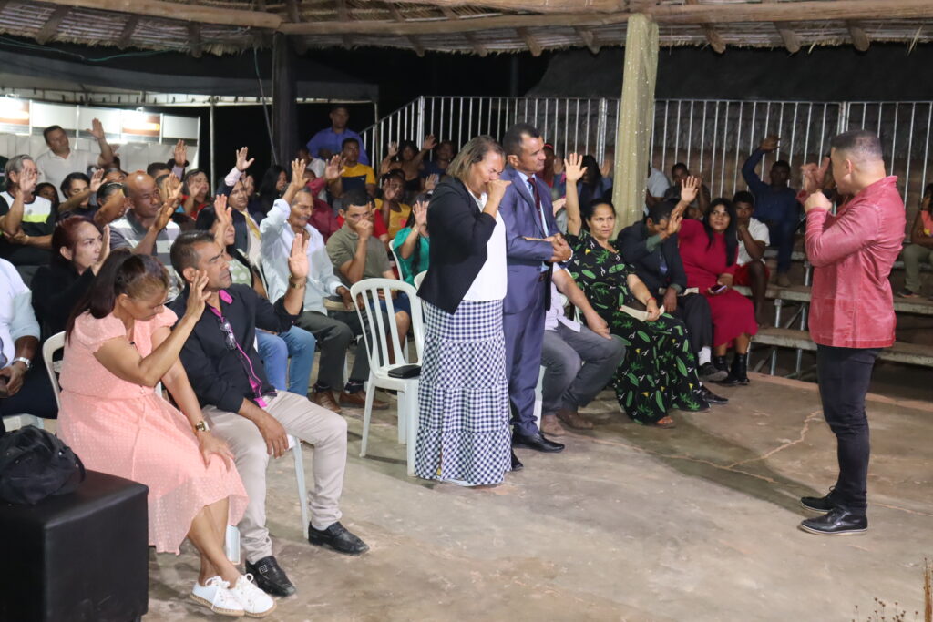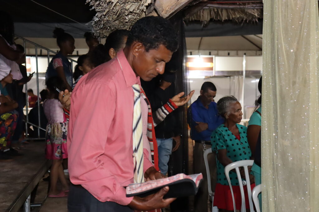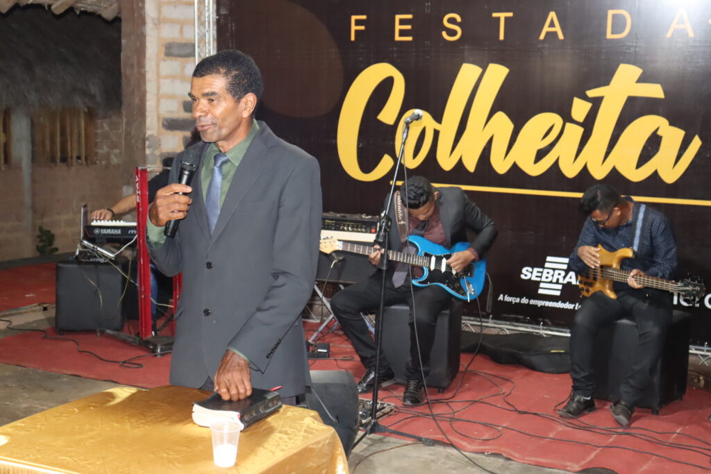 Orações fervorosas em louvor a Deus fizeram parte do evento. O pastor dirigente iniciou mencionando sua gratidão a todos os moradores. “Para mim é motivo de grande alegria estar aqui dirigindo esse culto em ação de graças pela festa da colheita e por tudo que Deus tem feito em nossas vidas. Estamos aqui para bendizer o nome santo do Senhor pelo que Ele faz por essa comunidade, o Capim Dourado, que é uma fonte de renda para o Jalapão e foi Deus que providenciou. Estamos aqui para agradecer por esse privilégio”, disse o pastor Tocha.