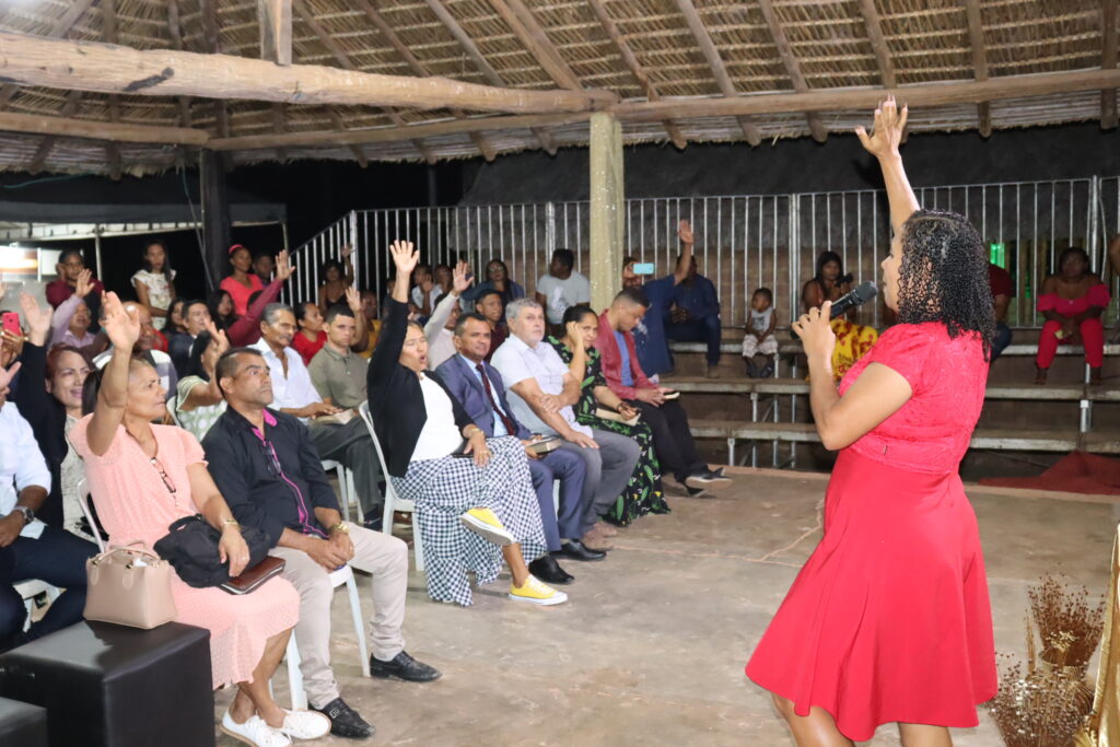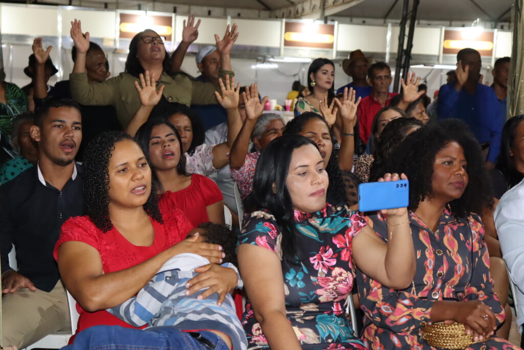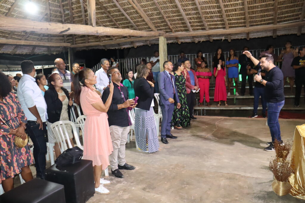 Músicos locais também ministraram louvores que fizeram os presentes se emocionarem glorificando a Deus, como a cantora Mirian Alves, vocalista da Banda GDA’s, que cantou uma música dando as boas-vindas aos visitantes.