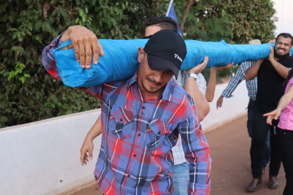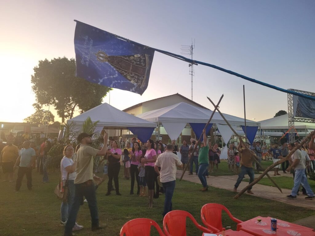 Após a passagem pela Praça José Eurico Costa, o mastro foi trazido pelas capitãs e moradores até a frente da igreja para o levantamento, momento de muita devoção para os participantes, e de união para que tudo ocorra em segurança. No alto, a bandeira de Nossa Senhora aponta que no local o festejo já começou, abençoando os cinco dias de festa, reencontros e confraternização.