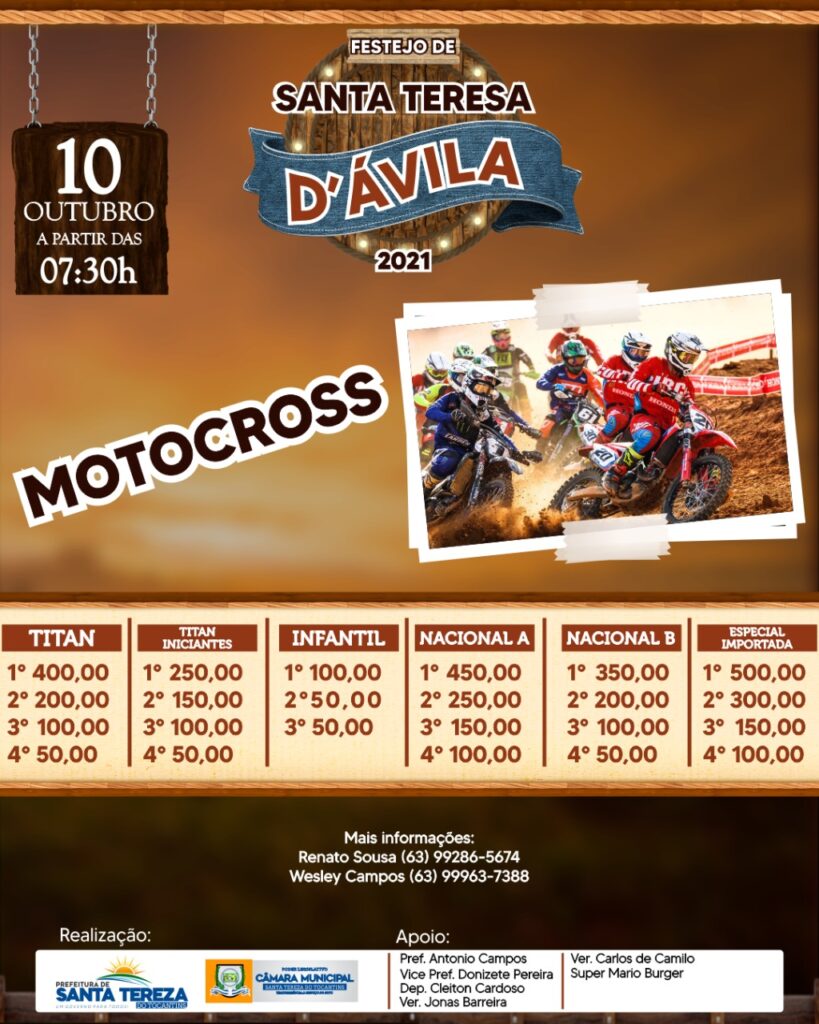 A tradicional festa de Santa Tereza D’ávila acontecerá entre os dias 6 e 15 de outubro, com as atividades religiosas devocionais à Padroeira, além das atrações que envolvem bingo, leilões, show, cavalgada, corrida de cavalos e motocross.