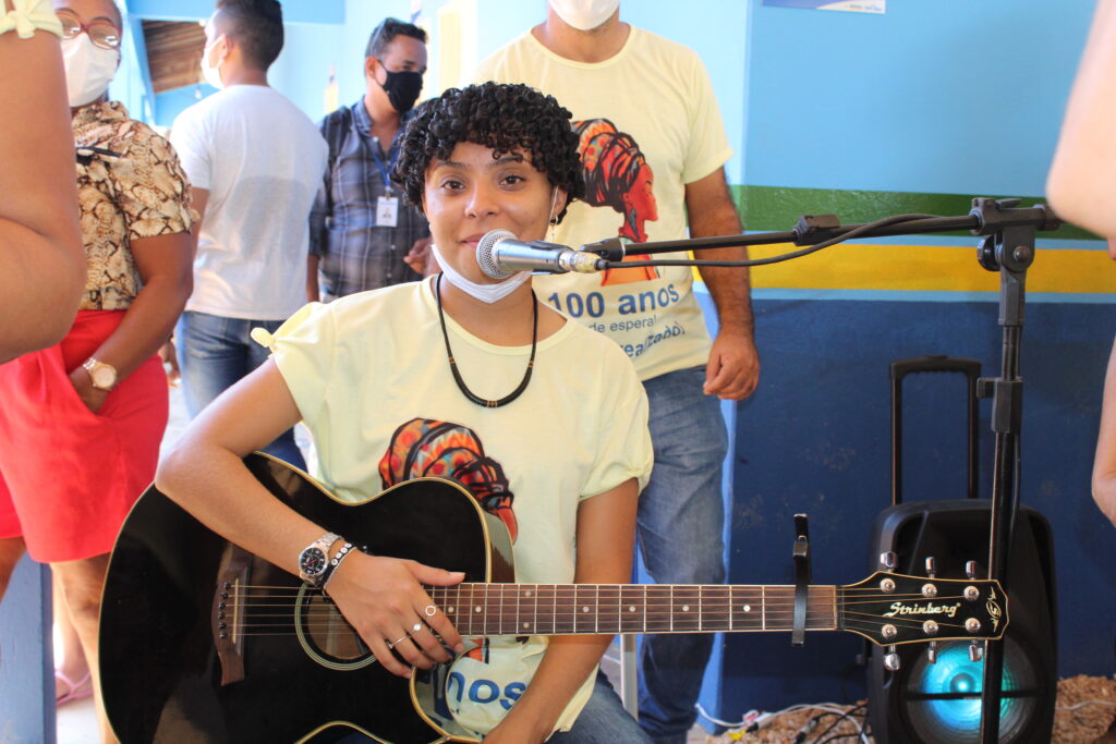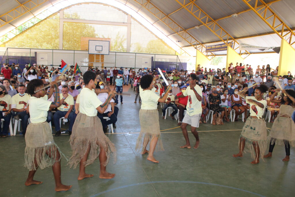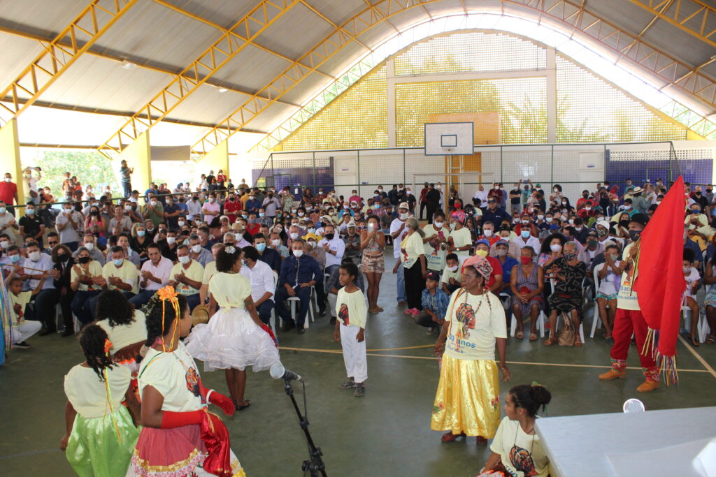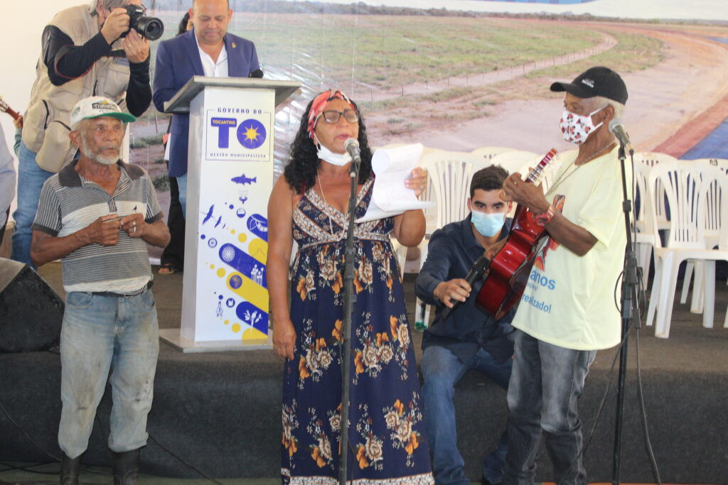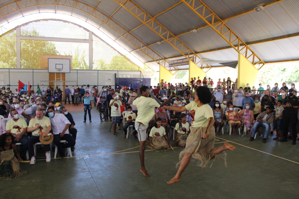 As autoridades foram recebidas com danças tradicionais do povo quilombola, além da interpretação musical com voz e violão da jovem Vitória Cabral, com a música Trem Bala de Anna Vilela.