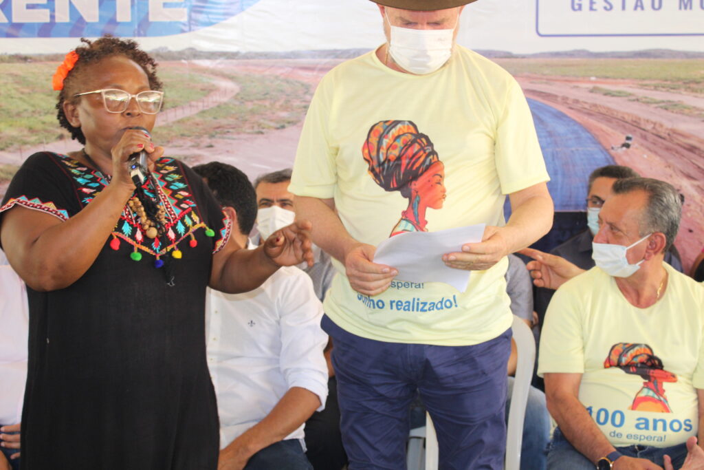 O título coletivo foi entregue à Associação Comunitária dos Quilombolas de Barra de Aroeira, que representa aproximadamente 120 famílias. A presidente da Associação, Maria de Fátima Rodrigues, comemorou o recebimento do documento e lembrou a história da Comunidade. “O sentimento de hoje é de muita alegria, por estar realizando uma etapa do nosso sonho, que é ter de volta a nossa terra. O nosso território tem uma extensão de 62 mil hectares, mas ao longo do tempo fazendeiros foram invadindo e nosso povo expulso. Hoje nós vamos receber a posse de 1 mil hectares que eu acredito que já vai mudar muita coisa. Então nós só temos a agradecer o apoio do governador Mauro Carlesse, nessa nossa luta de mais de 100 anos”, comemorou.