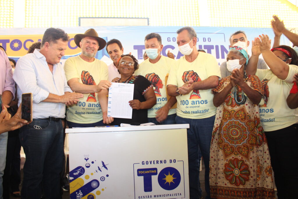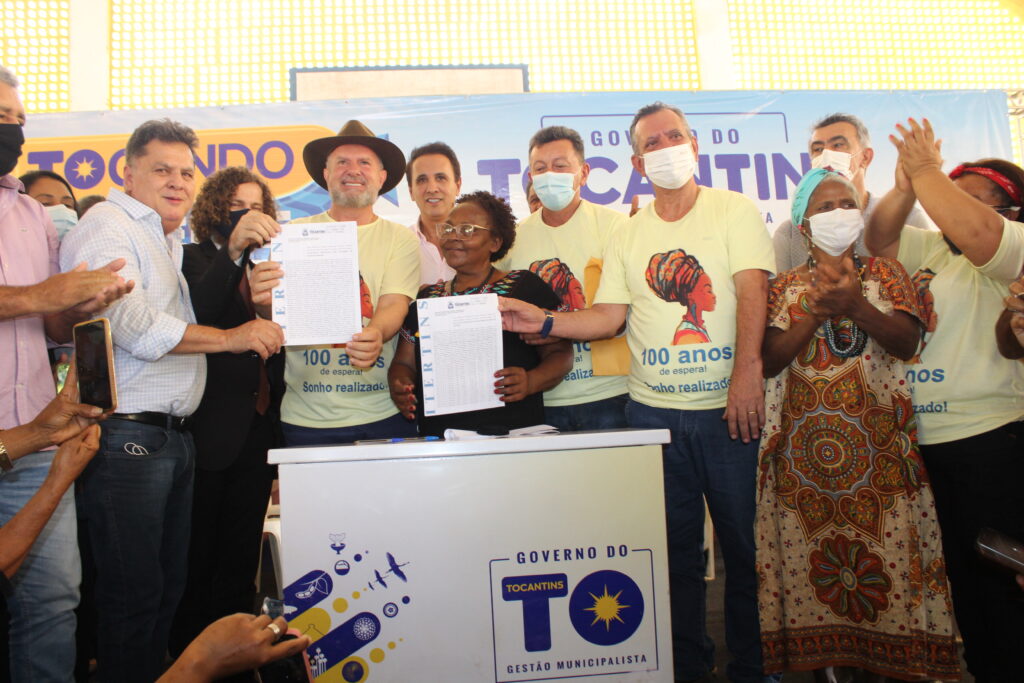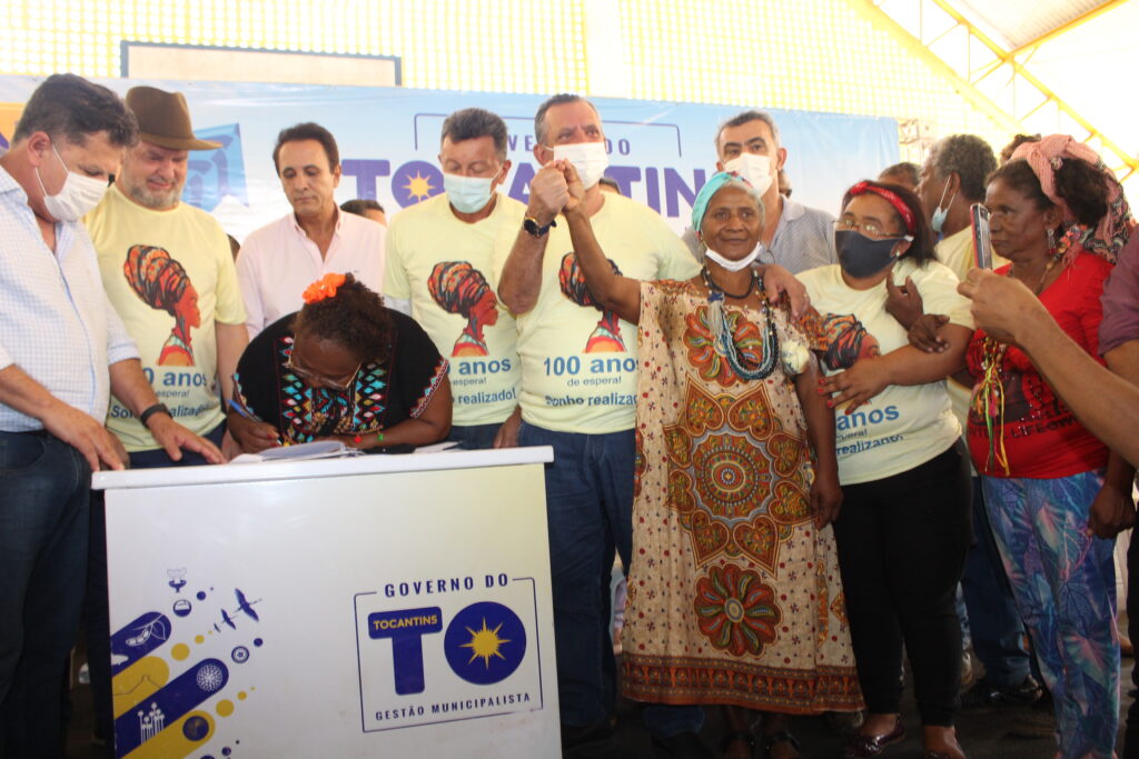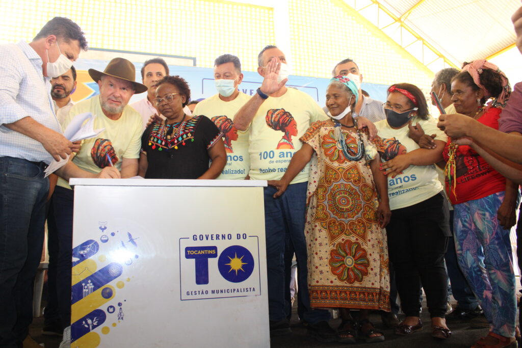 Ao lado de diversas autoridades estaduais, prefeitos e lideranças da Região, o governador Mauro Carlesse deu fim a mais de um século de luta e espera do povo quilombola da Comunidade Barra do Aroeira, que concretizou o sonho da regularização das terras locais em um momento com muita alegria, emoção e demonstrações culturais.