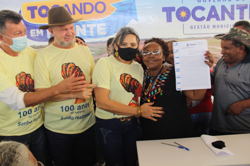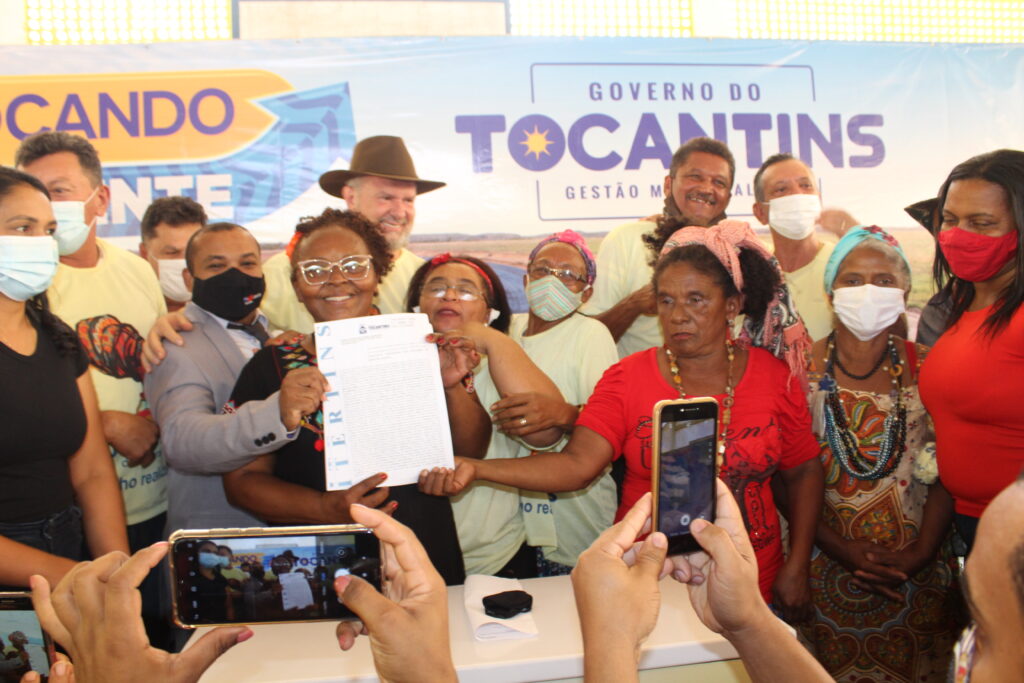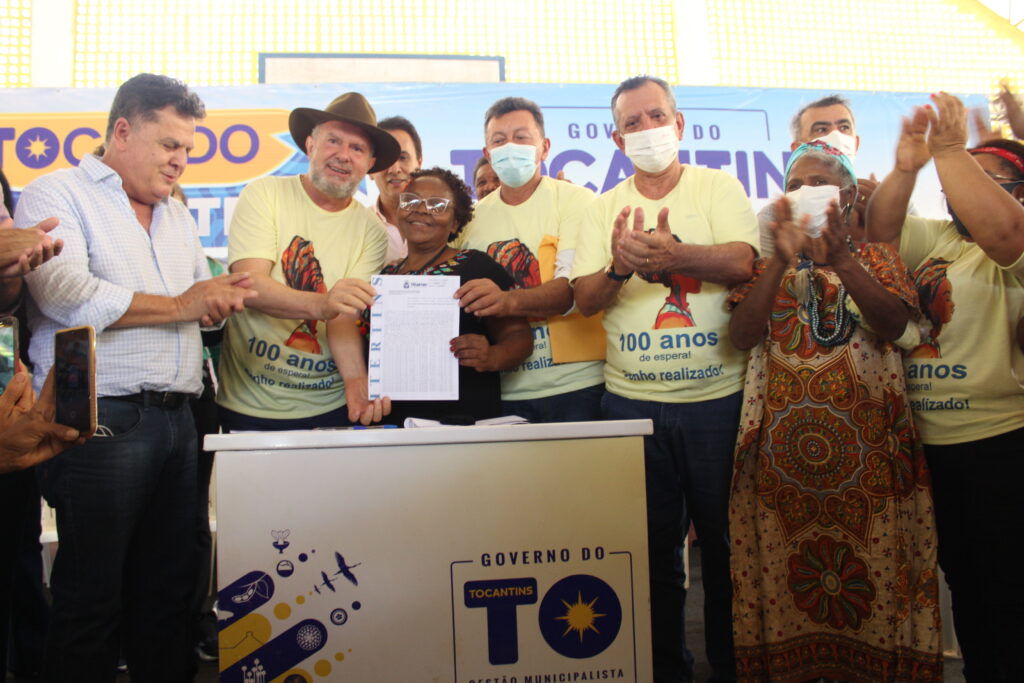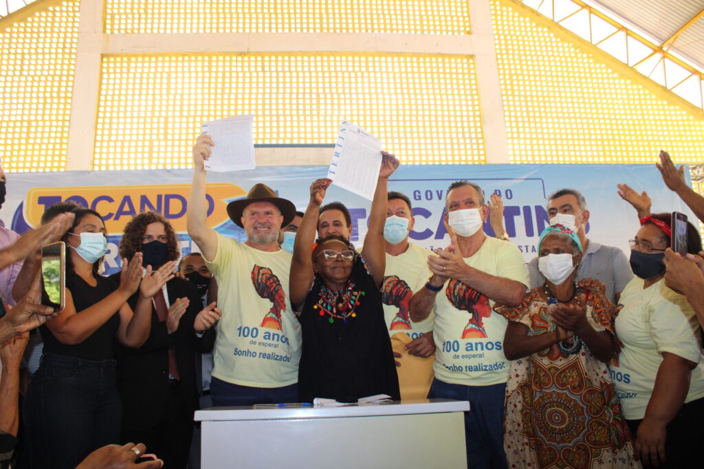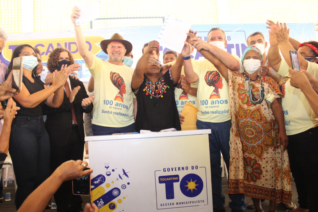Ao lado de diversas autoridades estaduais, prefeitos e lideranças da Região, o governador Mauro Carlesse deu fim a mais de um século de luta e espera do povo quilombola da Comunidade Barra do Aroeira, que concretizou o sonho da regularização das terras locais em um momento com muita alegria, emoção e demonstrações culturais.