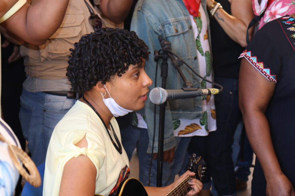 O evento foi aberto com a dança Maculelê, executada pelas crianças da Comunidade, além da dança com lenços, seguidos pela apresentação da moradora Salviana Rodrigues, que interpretou a música “Eu Venho de Longe”, que retrata a luta de Félix Rodrigues.