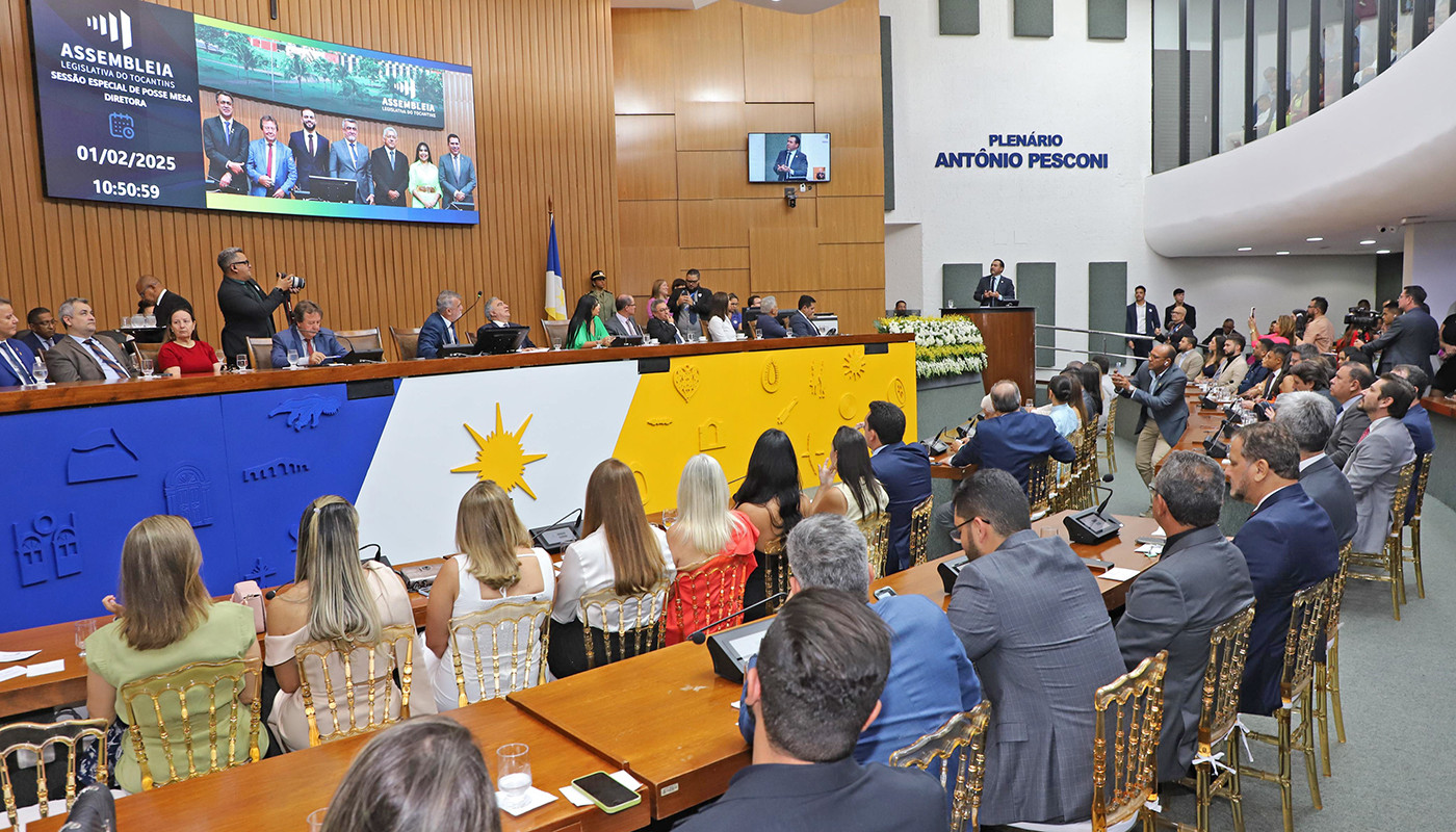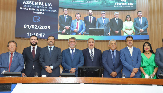 O governador Wanderlei Barbosa prestigiou, na manhã deste sábado, 1º de fevereiro, a sessão especial de posse da Mesa Diretora da Assembleia Legislativa do Estado do Tocantins, das 3ª e 4ª Sessões Legislativas da 10ª legislatura (2º biênio). A nova diretoria vai administrar a casa de leis nos anos de 2025 e 2026.