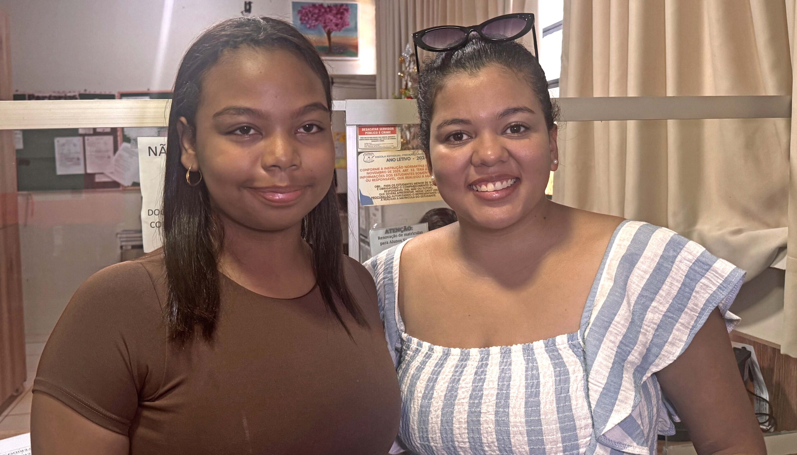 A estudante Ester Gomes Nascimento estudava na Escola João Paulo II, em Palmas, e compareceu acompanhada da sua irmã Isabel Ferreira Gomes, para confirmar matrícula na 1ª série do ensino médio. A estudante relatou os motivos pelos quais escolheu a Escola Estadual Frederico José Pedreira Neto, de Palmas.
