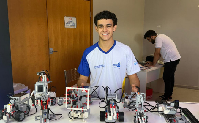 Heitor Barros, aluno da 2ª série do Ensino Médio da Escola Estadual Elizângela Glória Cardoso, em Palmas, está empolgado com as novas possibilidades de aprendizado proporcionadas pela robótica.