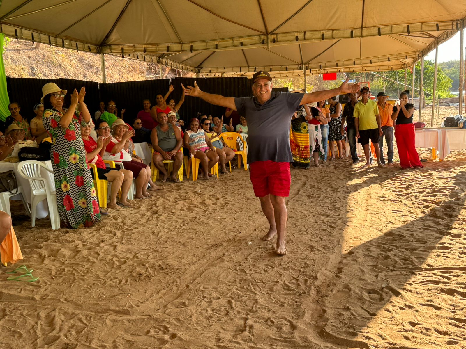 Na praia, os convidados especiais tiveram direito a uma decoração no estilo havaiano, e foram recebidos com um café da manhã e muita festa pela equipe de Rio Sono. O prefeito de Rio Sono, Itair Martins, celebrou o intercâmbio entre os integrantes e falou da alegria em ver o sorriso no rosto dos idosos. “Desejo as boas-vindas a todos vocês, a melhor idade é realmente para ser vida com muita alegria, todos aqui já contribuíram muito com o crescimento e o desenvolvimento não só das famílias, mas da sociedade. É gratificante receber os idosos de Aparecida. Parabéns aos que compareceram, que não levaram em conta suas limitações para estarem aqui”, afirmou.