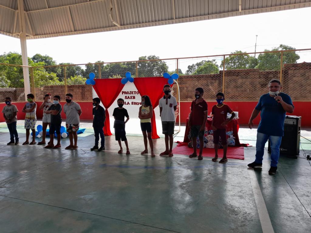 Os estudantes da Escola Municipal Delci Ribeiro Barros, de Lagoa do Tocantins, tiveram uma aula especial nesta quinta-feira, 11, na quadra da unidade escolar. Os alunos participaram do Projeto SAEB Aula Show, promovido pela equipe da escola com o suporte da Secretaria Municipal de Educação (Semed), que disponibilizou brindes que foram entregues aos alunos participantes.