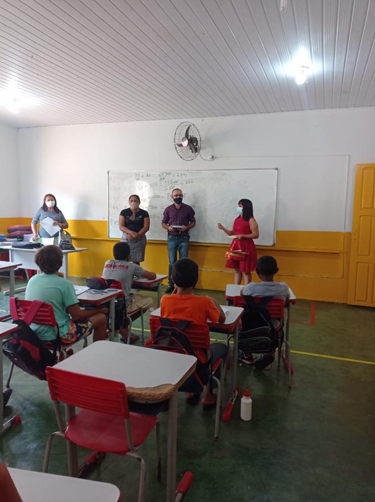 No dia anterior à aula, a equipe técnica da Semed esteve na Escola Municipal para mobilizar os alunos a fazer a prova em massa e participar do projeto, entregando a eles chocolates com uma frase de incentivo, além de realizar a busca ativa junto às famílias que ainda não enviaram os alunos para as aulas devido à pandemia.