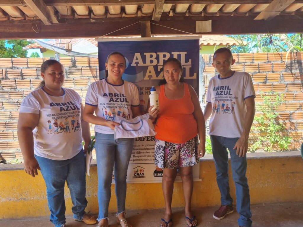 Com o tema da campanha “Somos todos iguais na diferença”, a equipe da Secretaria de Assistência Social encerrou este mês realizando uma série de visitas aos moradores com TEA no município. Com esse intuito de levar carinho e atenção a essas pessoas especiais, os servidores do órgão também entregaram cerca de 100 kits, com squeezes personalizados e camisetas.