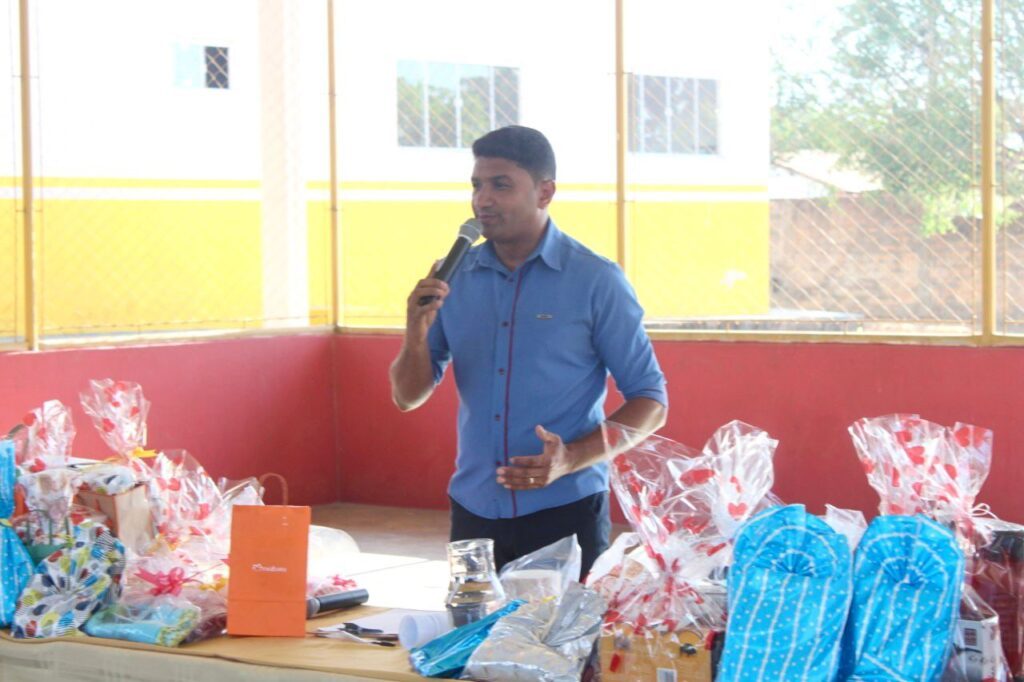 Ao contrário do que ocorre todos os dias na Escola Municipal Delci Ribeiro Barros, foi a vez dos pais participarem de um momento interativo para convivência com a equipe educacional. Houve brincadeiras, sorteio de brindes e entrega de mudas pela Secretaria Municipal de Meio Ambiente