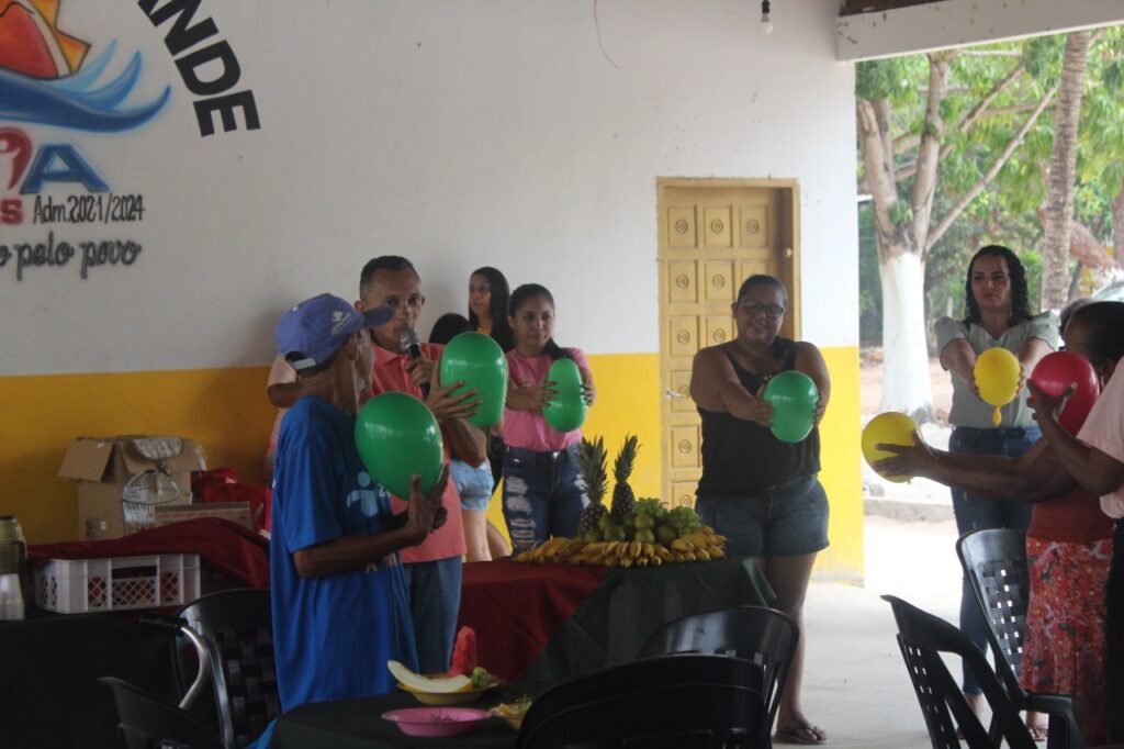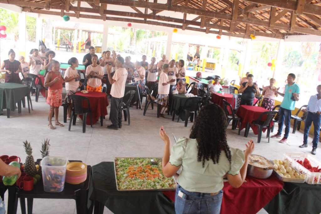 A manhã foi recheada de dinâmicas, brincadeiras e o animado concurso de forró. Os idosos também participaram da dança do balão e se divertiram com a dinâmica com garrafas pet. O banho no balneário foi convidativo para refrescar o forte calor e foi também um momento interativo, promovendo aos idosos socialização, alegria e descontração.