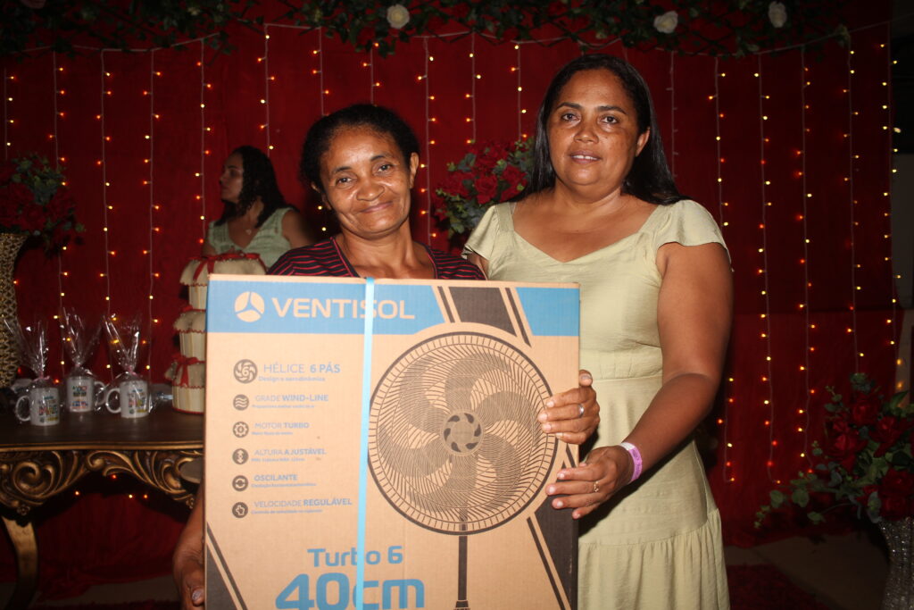 Além das entregas das lembranças a todas as convidadas, o sorteio dos brindes animou as mamães, que ganharam prêmios como ventilador, fogão, micro-ondas e até TV. Os presentes foram obtidos por meio de parcerias com o comércio local, secretários, vereadores e servidores.