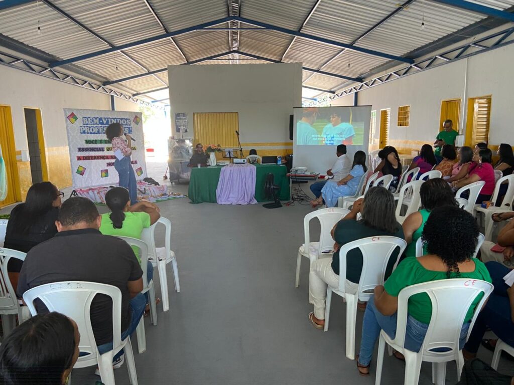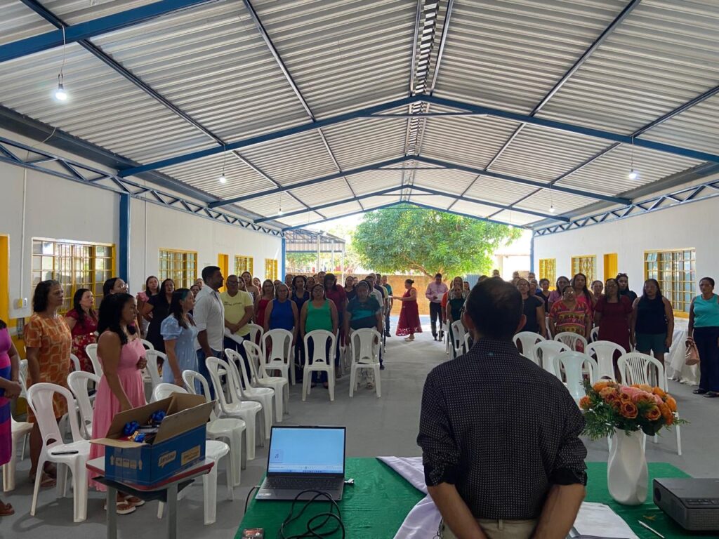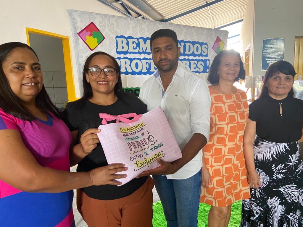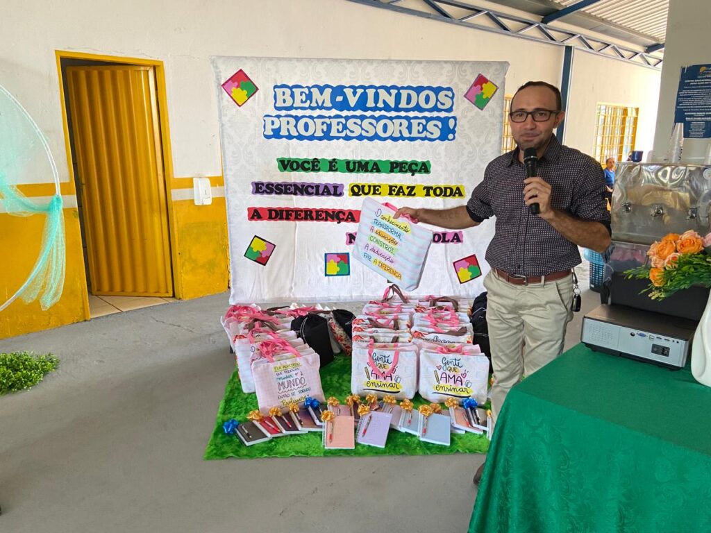 Já a acolhida dos professores ocorreu no Centro Educacional infantil Joceli Alves dos Santos com os professores de toda a Rede Municipal. O encontro foi promovido pela Semed, que serviu um delicioso café da manhã, efetuou a entrega de kits de materiais didático-pedagógico para os professores, realizando ainda uma palestra motivacional ministrada pela Psicóloga, Jéssika Calai.
