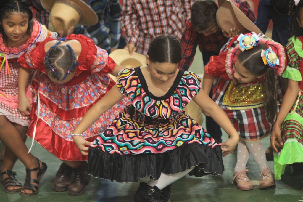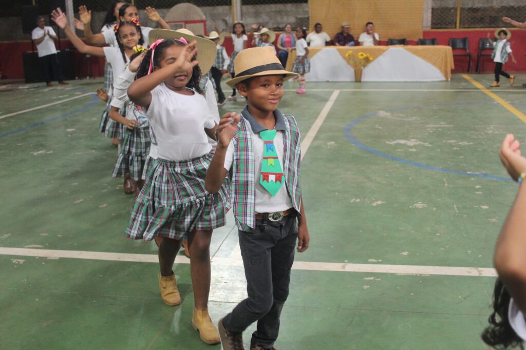 As turmas que apresentaram a dança junina foram o 1° e 2° ano, seguidos das turmas do 3° ao 7° ano.