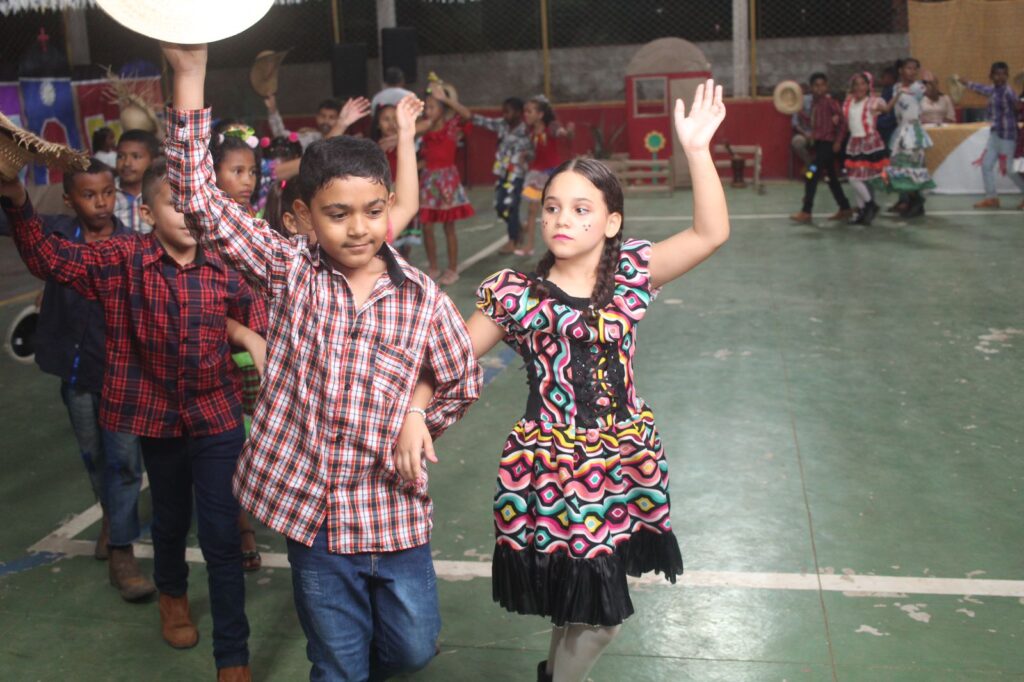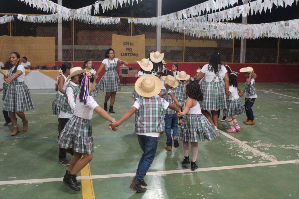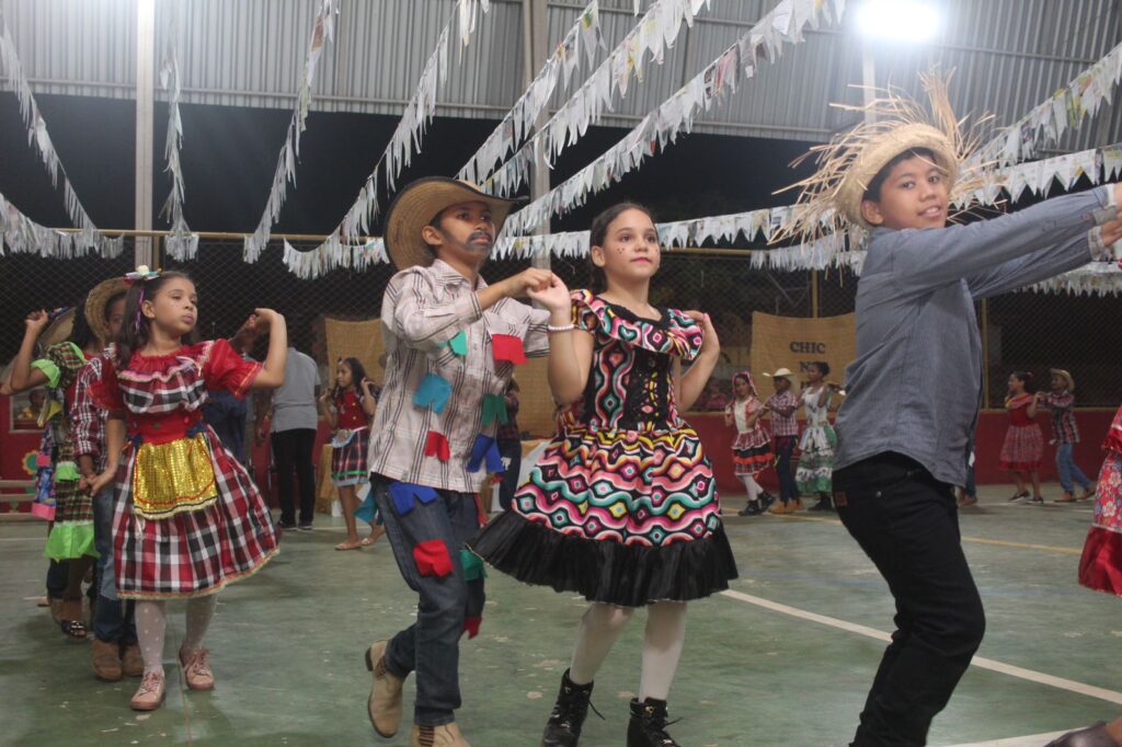 Com trajes caipiras e muito estilo, os alunos da unidade escolar deram um show de animação e desenvoltura ao dançarem na festa junina que contou com a participação da comunidade