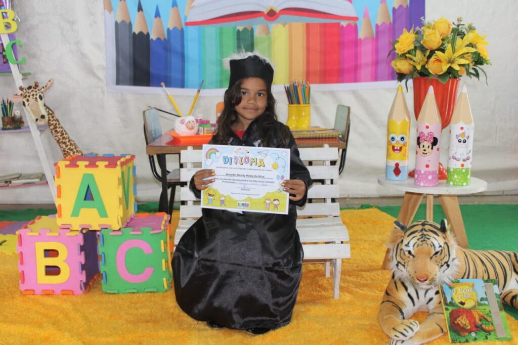 A Secretaria Municipal de Educação de Mateiros preparou um momento simbólico para formalizar a passagem dos alunos da Educação Infantil para o Ensino Fundamental. Os pequenos estudantes receberam seus primeiros diplomas com beca e cenário para fotos.