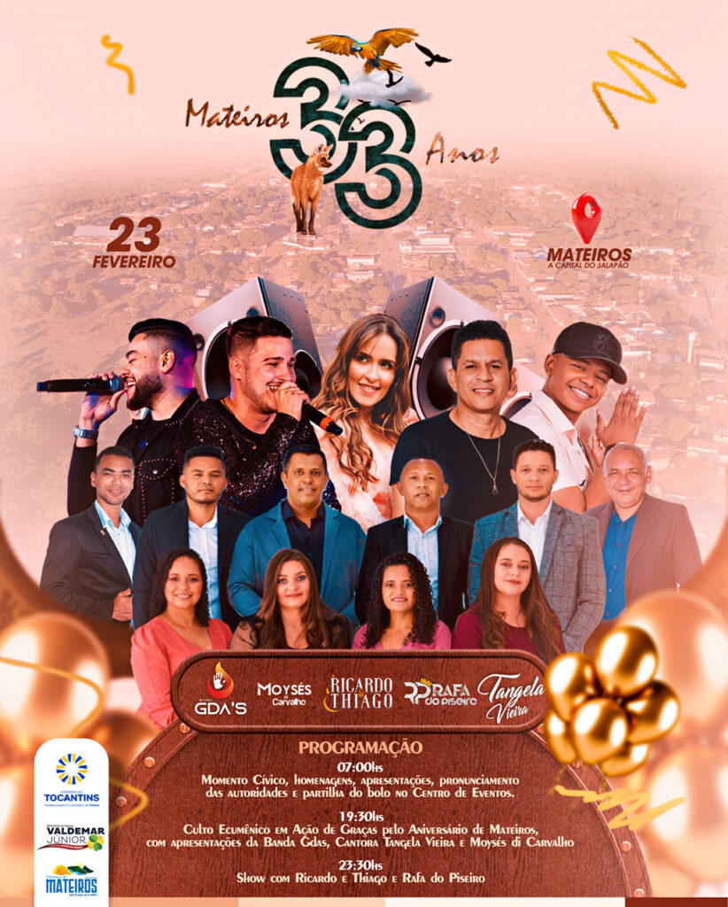 Mateiros celebra 33 Anos com programação festiva no dia 23 de fevereiro