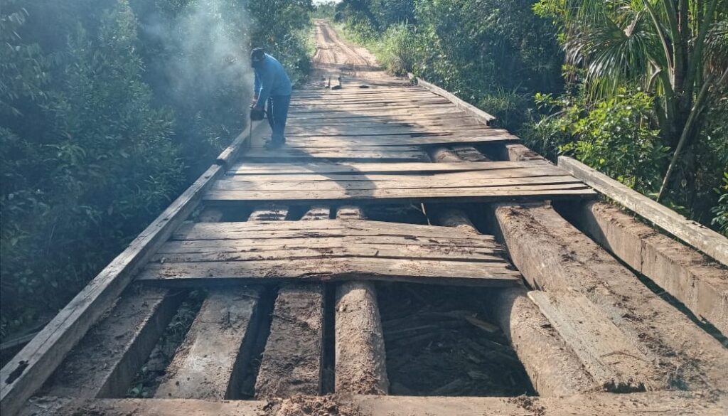 A Prefeitura de Mateiros, em parceria com o Governo Estadual, realizou nesta terça-feira, 1º, a recuperação da ponte que fica localizada na região do Galhão, distante 50 km do município. A estrutura de madeira estava deteriorada e gerava risco de passagem para os moradores e motoristas.