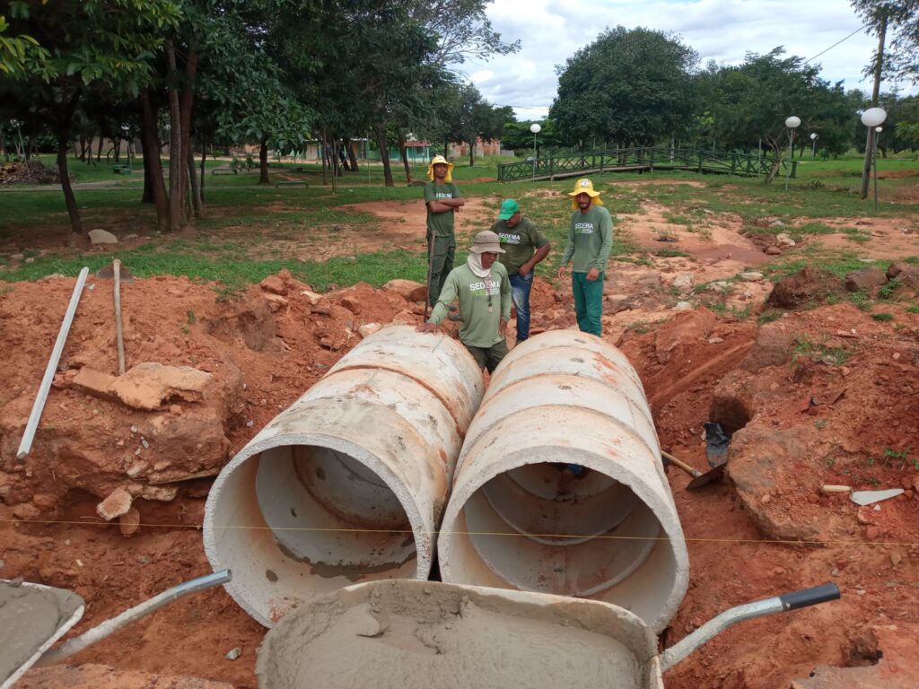 Outro problema que está sendo resolvido pela Prefeitura é o escoamento da água, por meio da construção de uma galeria, entre as ruas Piauí e Maranhão, no Centro da cidade, para facilitar a passagem da água e evitar a infiltração dos terrenos e residências que ficam localizadas nas vias.