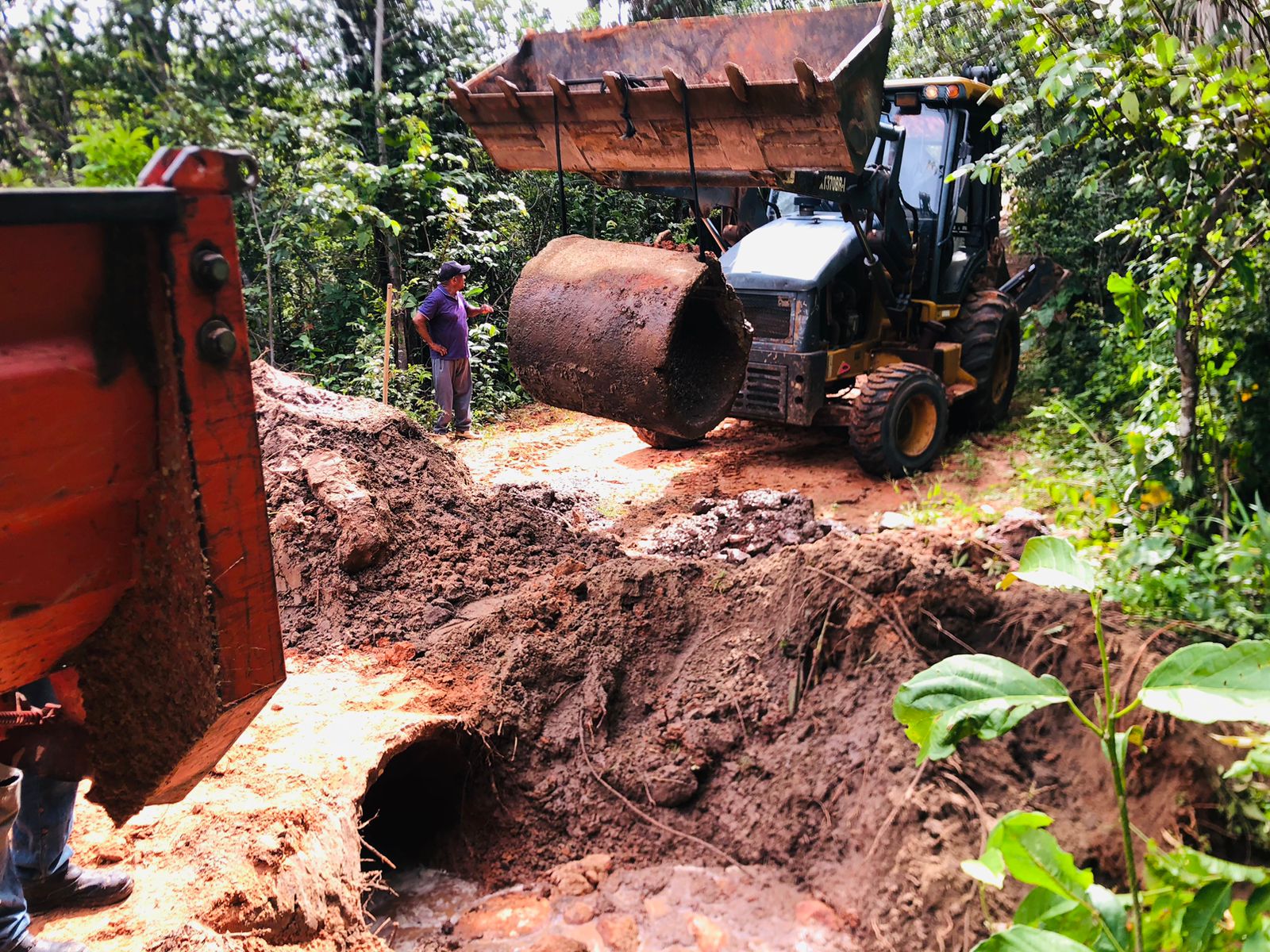 Nesta quinta-feira, 26, a equipe da Infraestrutura esteve realizando manutenção corretiva em um dos bueiros na região do Mumbuca
