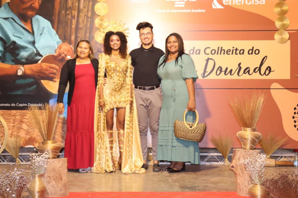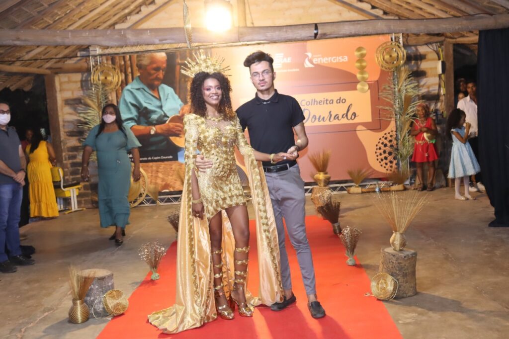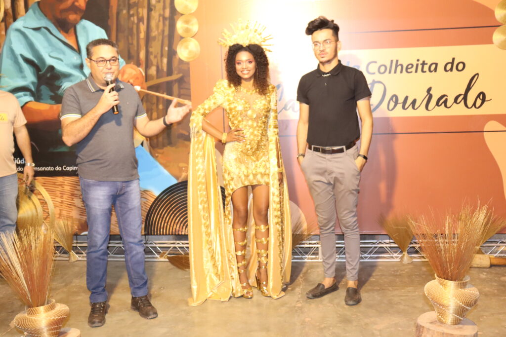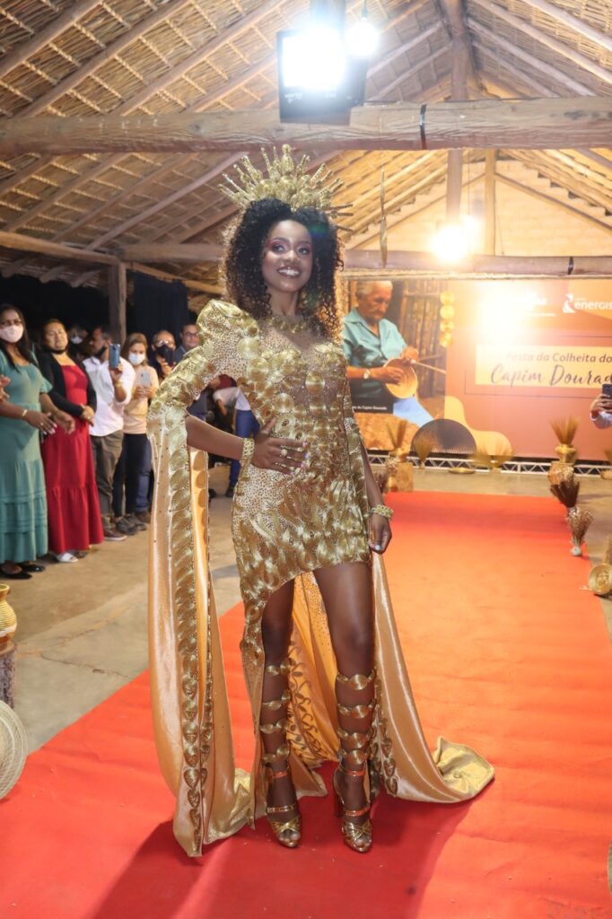 O traje conta com mais de 1100 peças artesanais, produzidas com o apoio de 15 artesãs, e levou mais de 720 horas para ser confeccionado. “O vestido é um grande quebra-cabeça. Cada peça busca destacar o trabalho das artesãs e a beleza do Capim Dourado. Ter esse trabalho reconhecido pela comunidade e trocar experiências com as famílias que deram origem a essa tradição é algo mágico para mim”, revela o estilista Luiz Fernando, que realizou uma bate-papo com as artesãs e adolescentes do Mumbuca ao expor a peça durante a festa.