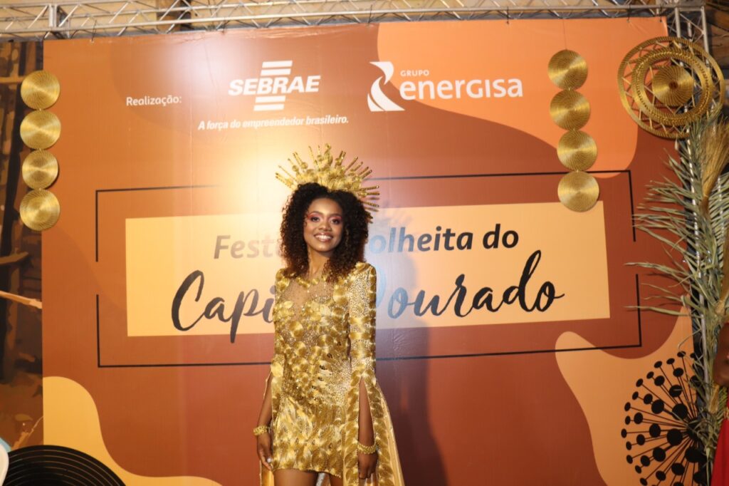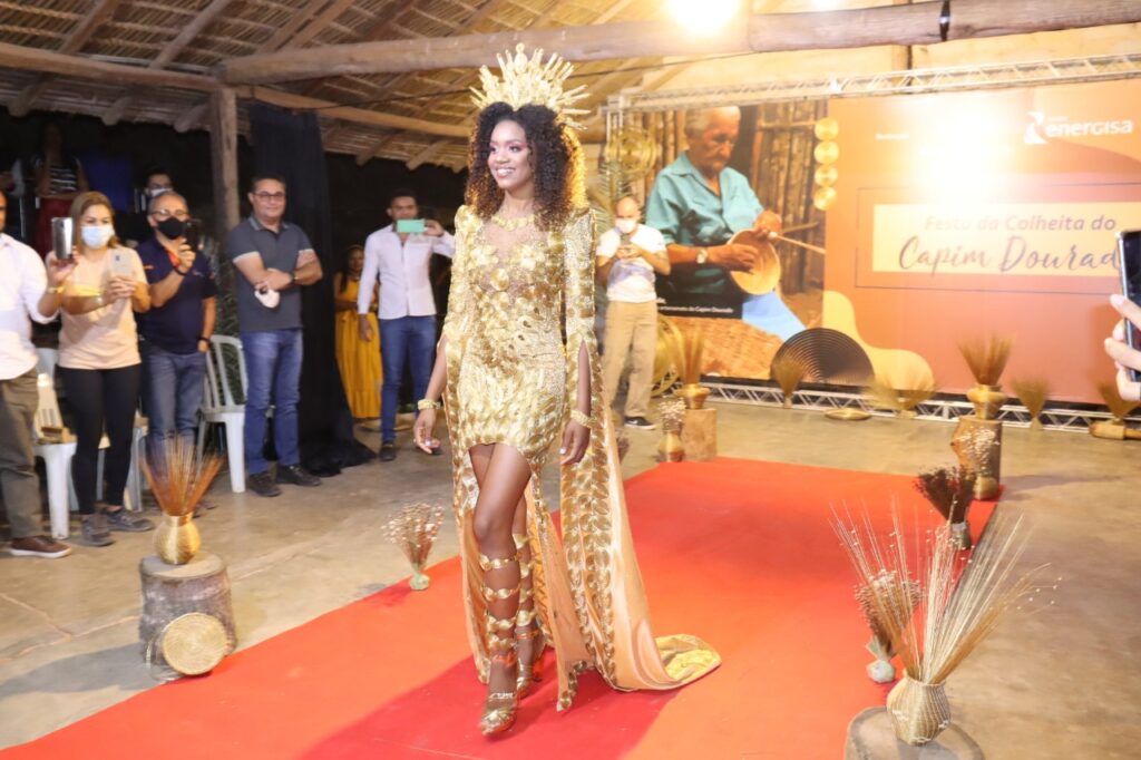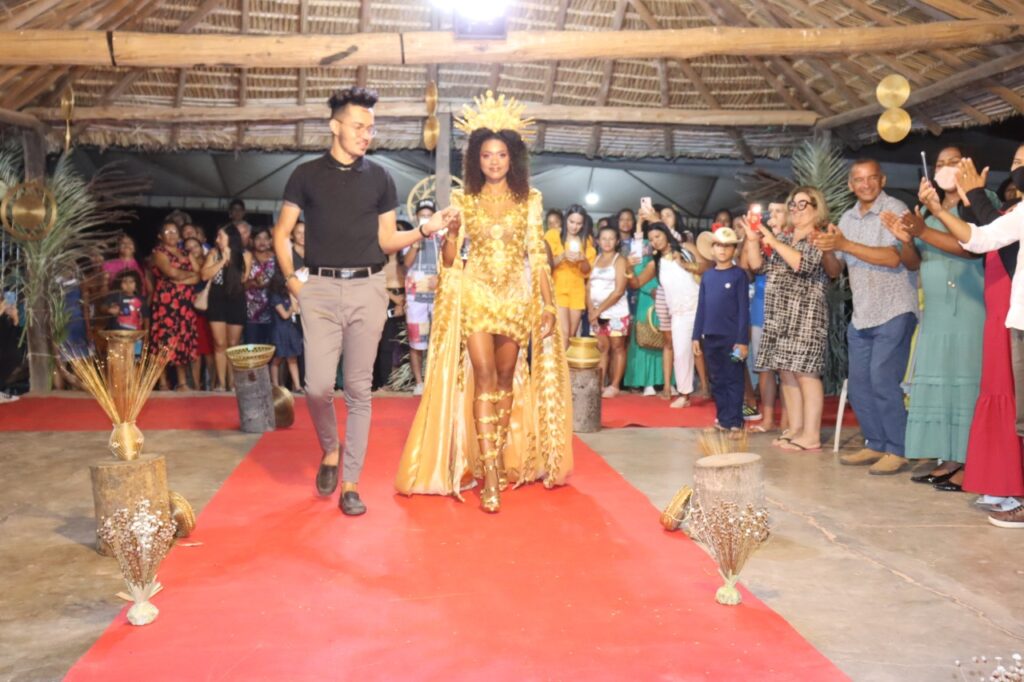 A jovem brilhou na passarela e teve todos os olhares voltados com o lindíssimo vestido cobiçado e elogiado em todo o Brasil. O vestido de Capim Dourado, desenhado pelo estilista tocantinense Luiz Fernando Carvalho para o Miss Brasil 2021, foi usado pela modelo Mylena Nascimento, com o apoio do Governo do Tocantins. O traje pertence ao acervo da Agência do Desenvolvimento do Turismo, Cultura e Economia Criativa (Adetuc).