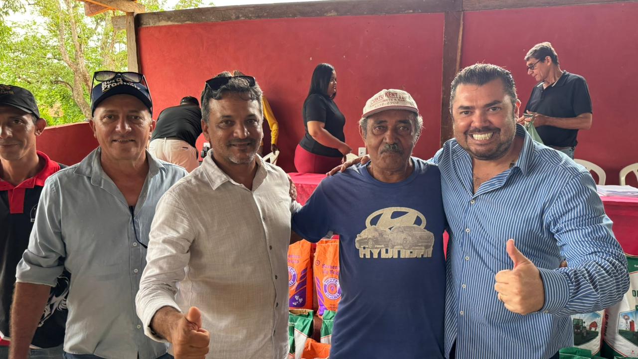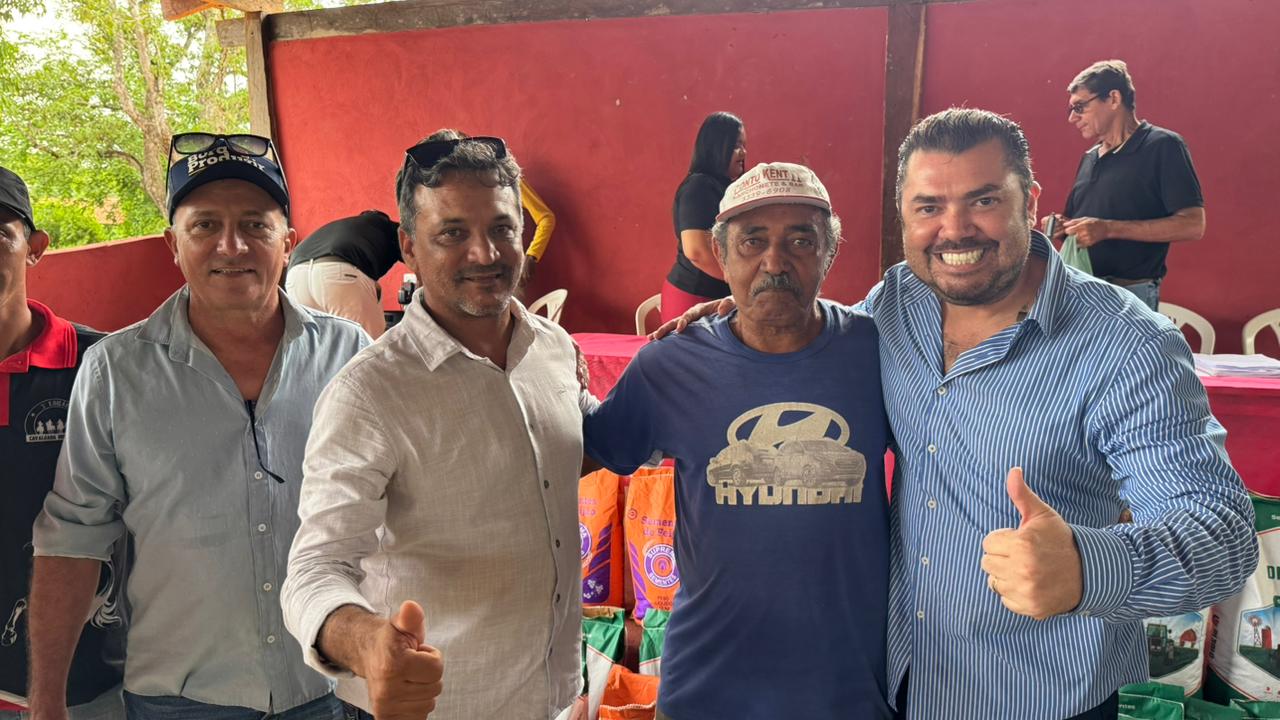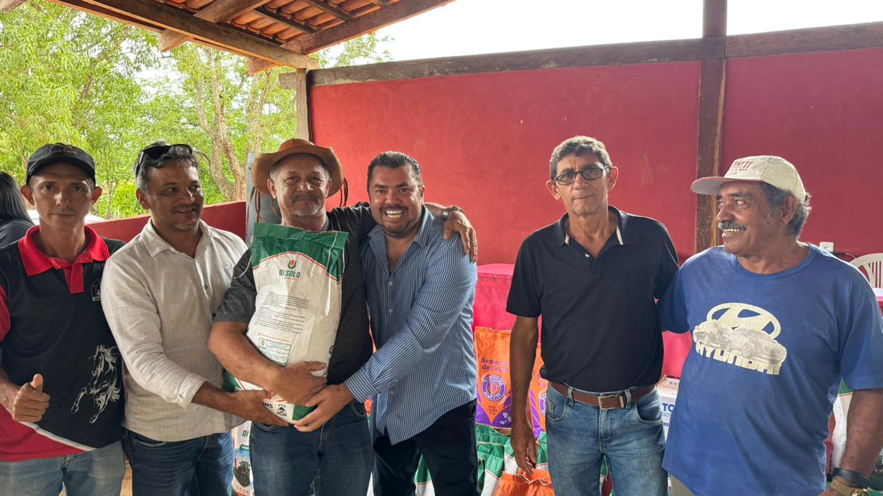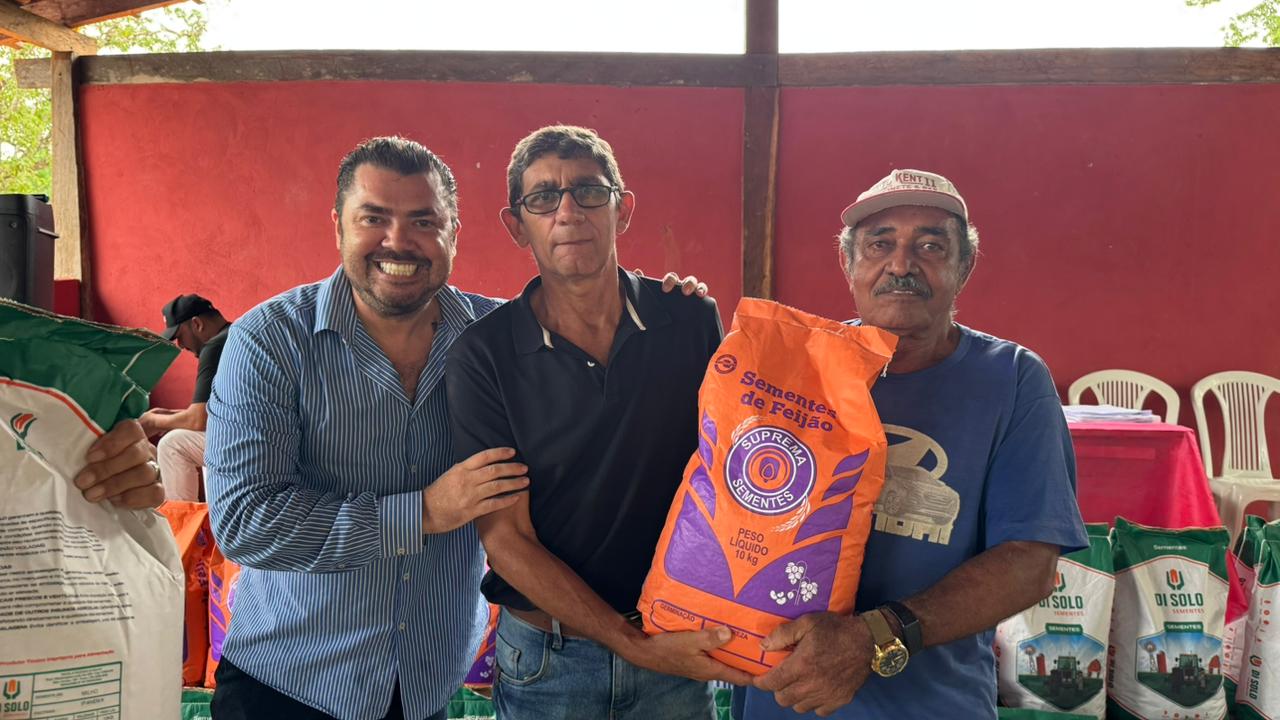 Os produtores receberam do Prefeito Mateus as sementes de milho, kits de horta, arroz e feijão, no Assentamento Primogênito, fortalecendo a agricultura familiar e garantindo mais apoio ao homem do campo. O gestor esteve acompanhado do vice-prefeito Pedro Andrade, equipe da Secretaria Municipal de Agricultura, demais secretários e vereadores, com foco em garantir não só as sementes, mas os serviços de gradagem e apoio total aos agricultores.