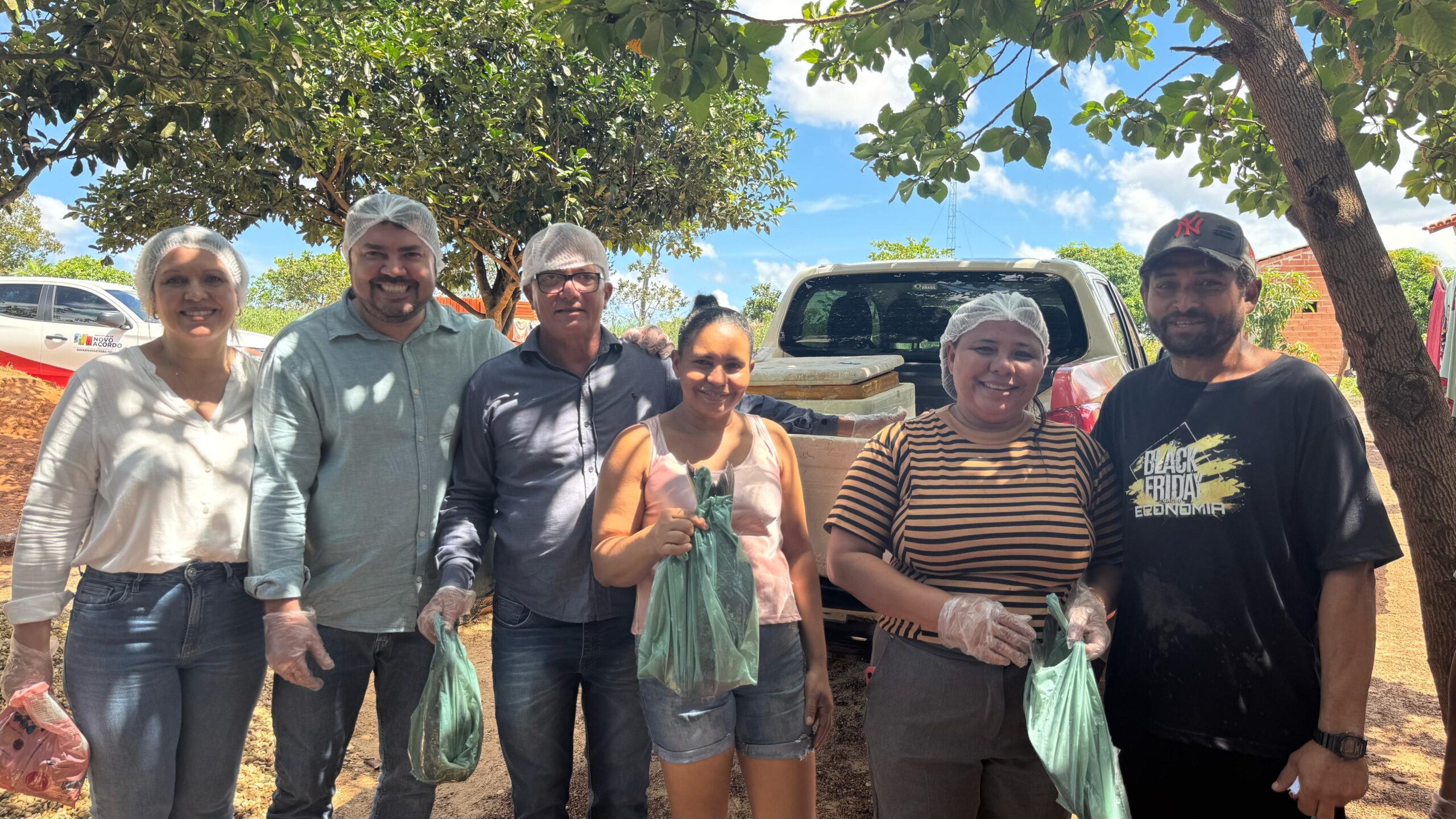 A distribuição também ocorreu na zona rural, levando os alimentos ao Assentamento Primogênito, beneficiando mais de 80 famílias, e na região do Murici, garantindo que o alcance da ação fosse amplo e bem coordenado. Além do tradicional peixe, abóboras também foram entregues para complementar a mesa dos novoacordenses neste período.