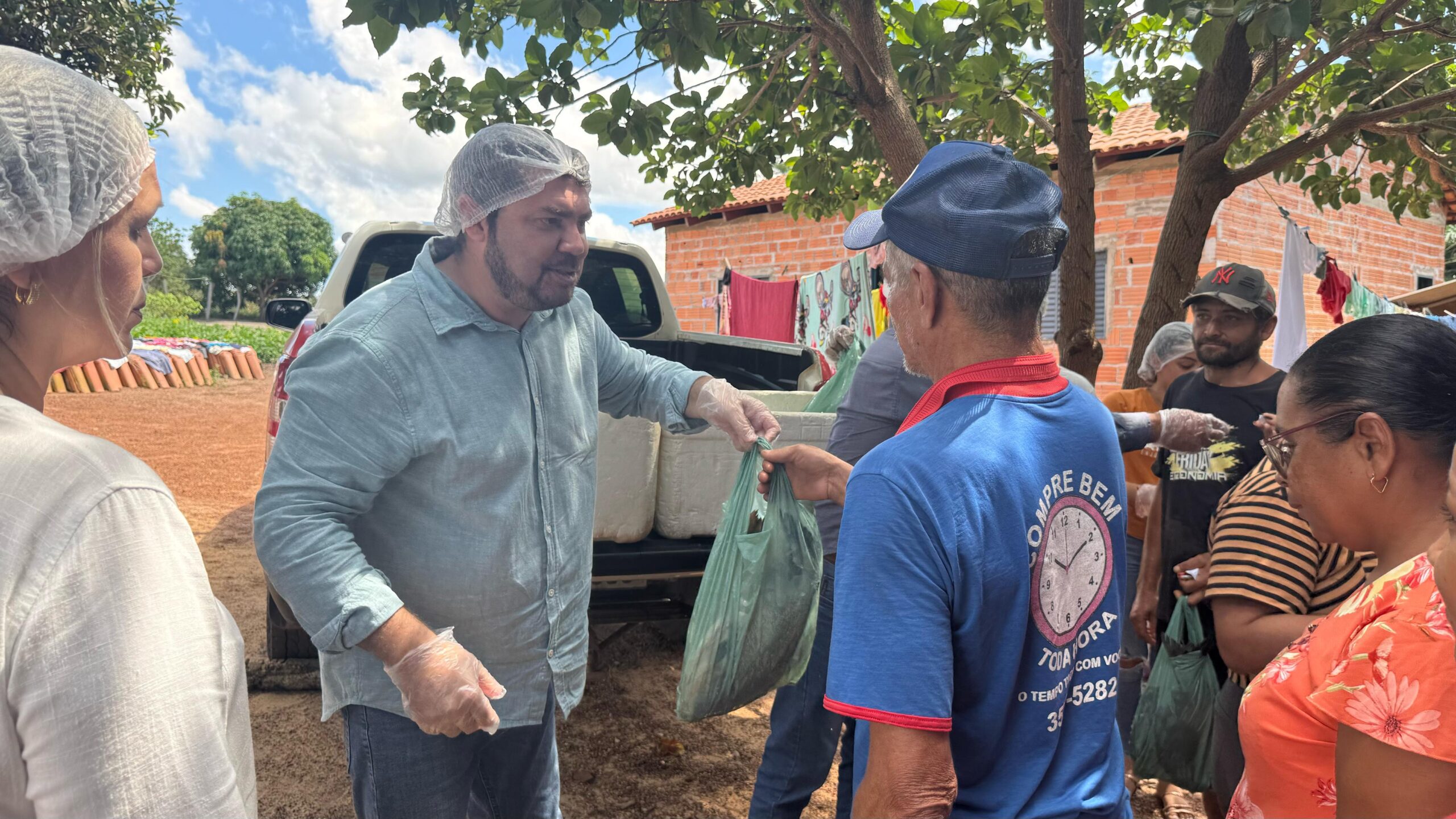 O prefeito Mateus Coelho acompanhou de perto a distribuição dos alimentos e destacou o compromisso da gestão em garantir dignidade e cuidado as famílias do município.