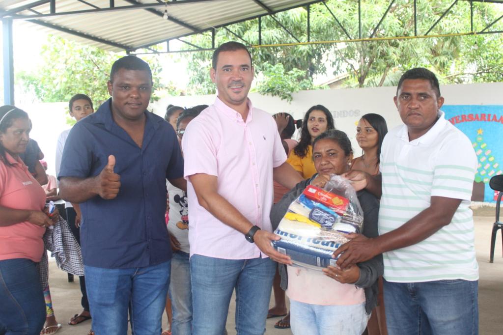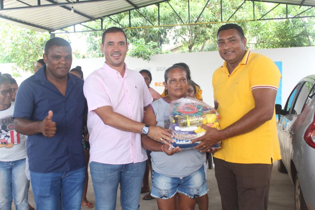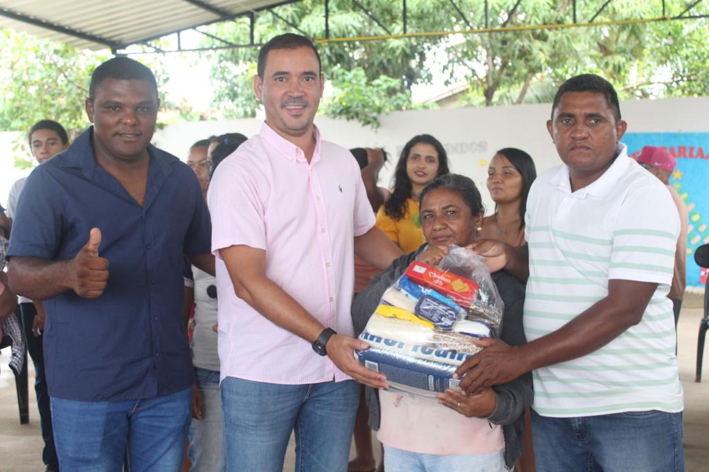 Prefeito Leandro e deputado Vicentinho entregam cestas de alimentos a famílias de Lagoa do TO