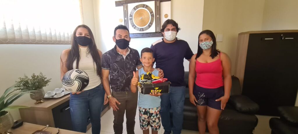 O pequeno Júlio César, de 9 anos, teve uma manhã mais que especial nesta terça-feira, 11, ao receber um presente que o encheu de alegria: um par de chuteiras, uma bola e um par de meiões. A doação foi da Prefeitura Municipal de Aparecida do Rio Negro, que recebeu os brindes da empresa Esporte Center.