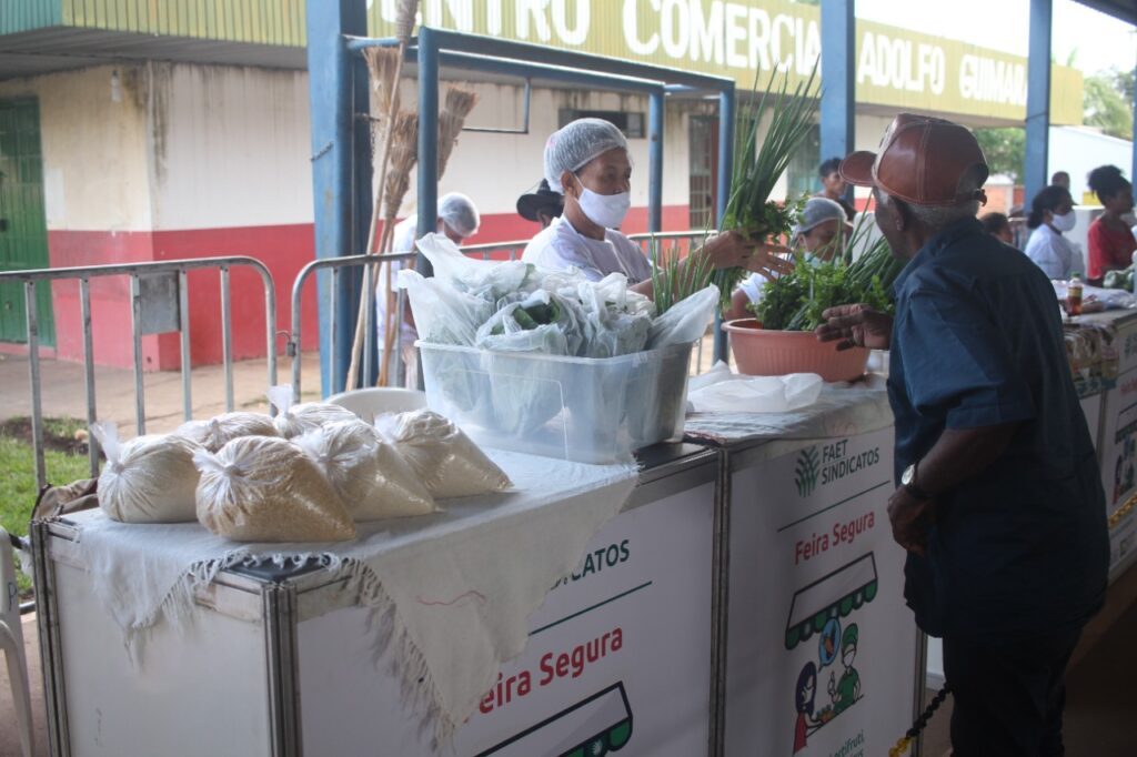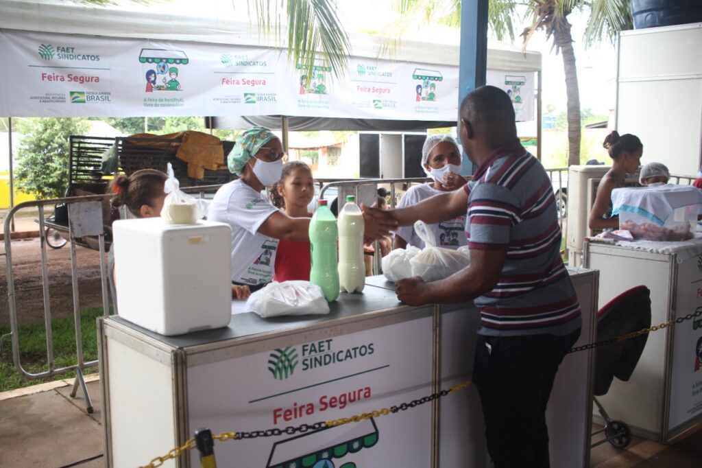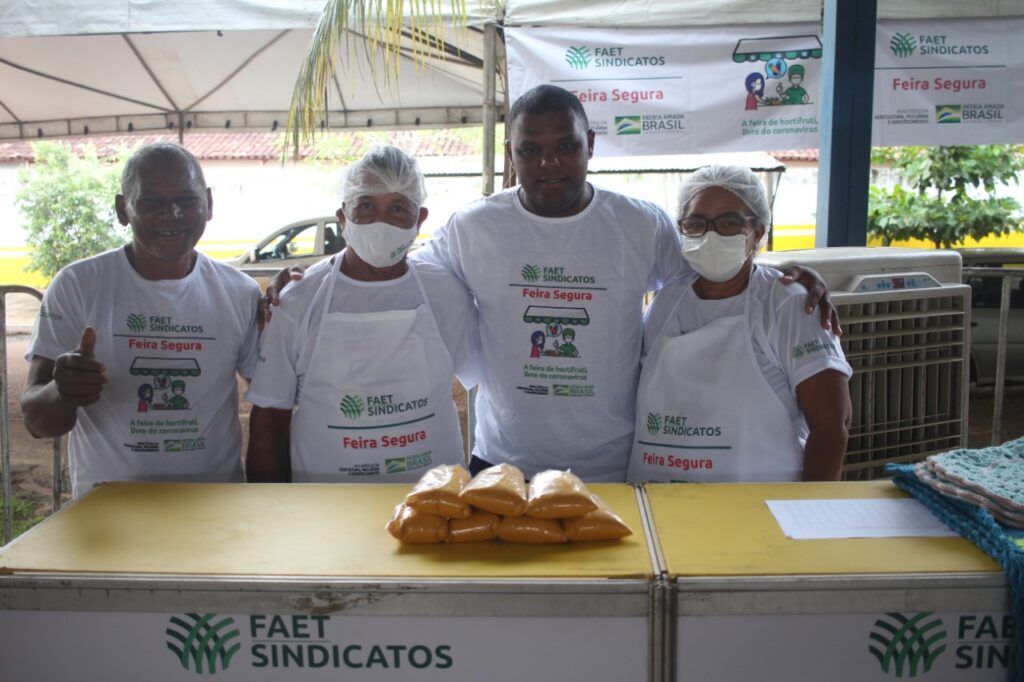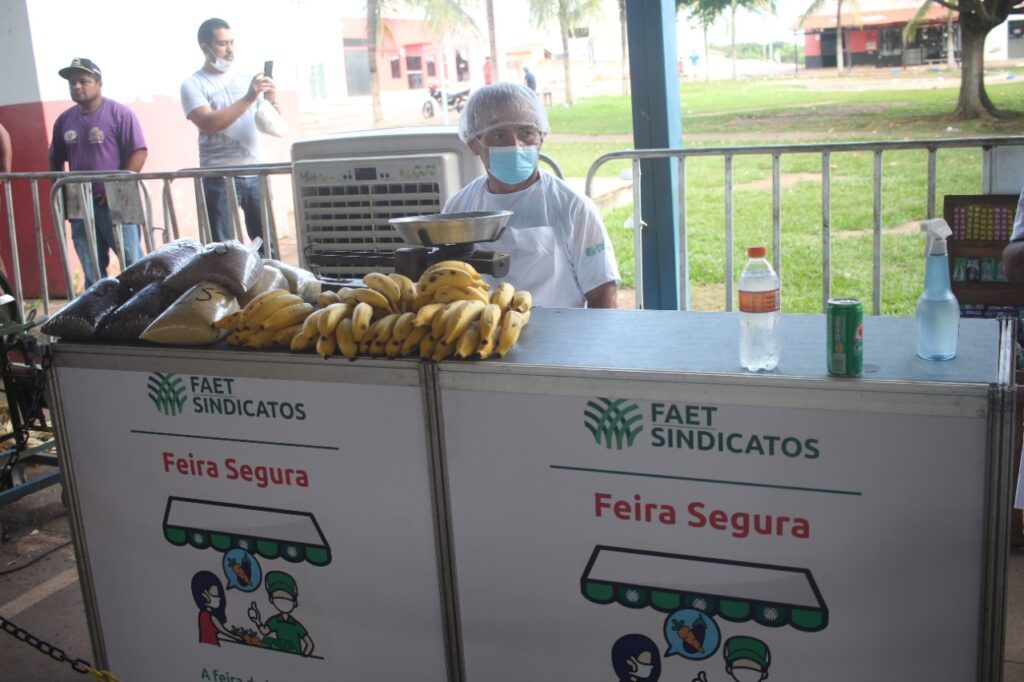 Com a finalidade de atender às recomendações da OMS – Organização Mundial de Saúde, o Sistema CNA/Faet/Senar disponibiliza toda estrutura física necessária para realização da feira em cada município, como tendas, climatizadores, disciplinadores para fechamentos, barracas padronizadas, cadeiras, unifilas para garantir o distanciamento, pia para higienização das mãos e o material de identidade visual que garante a divulgação de orientações das autoridades de saúde.