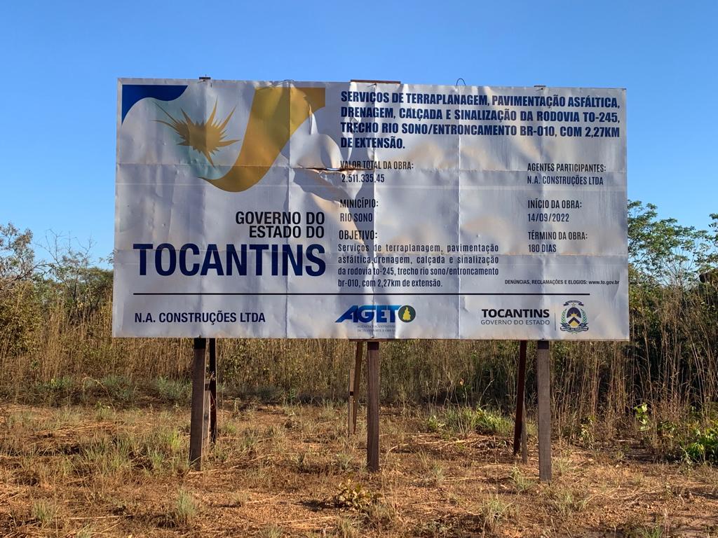Após anos de espera finalmente a população de Rio Sono vê máquinas trabalharem para a execução do asfalto do trecho urbano da TO-245, que liga a cidade ao trevo da BR-010. A obra é realizada pelo Governo do Estado em parceria com a Prefeitura, e é comemorada pelo prefeito Itair Martins