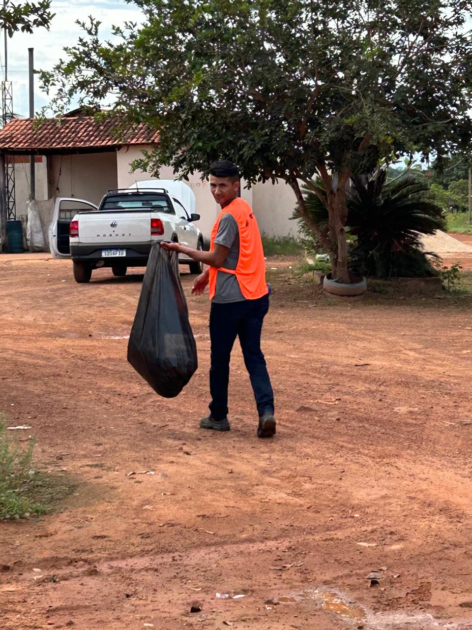 Foram divididos os grupos que passaram de casa em casa distribuindo panfletos, sacos de lixo e uma breve fala para orientar sobre a coleta do lixo de forma correta.