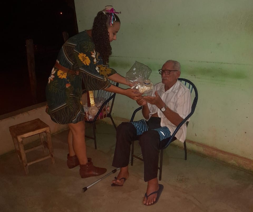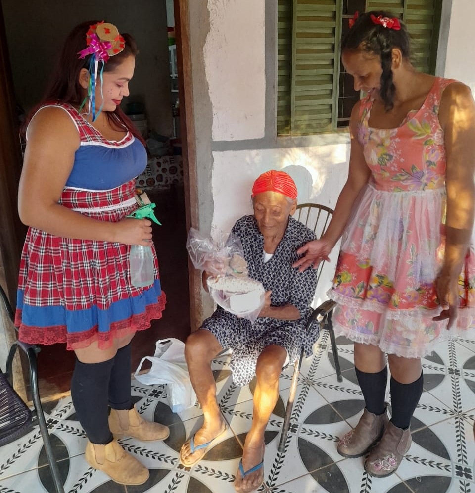 Já na cidade as visitas ocorreram no fim da tarde aos 60 idosos do grupo Viver com Alegria. Além de entregar os kits, os servidores também dançaram os passos juninos na frente das residências, deixando os idosos ainda mais alegres.