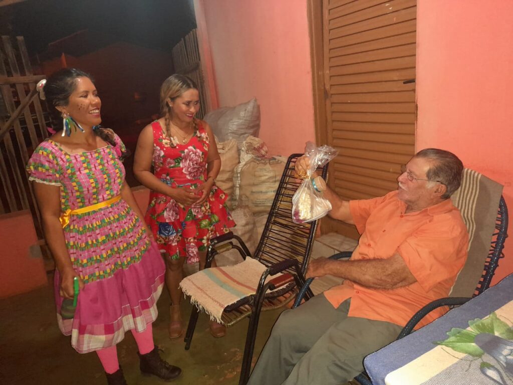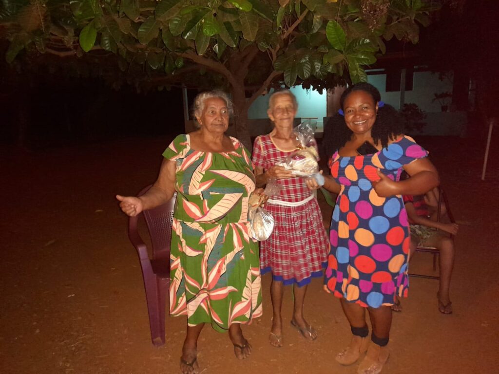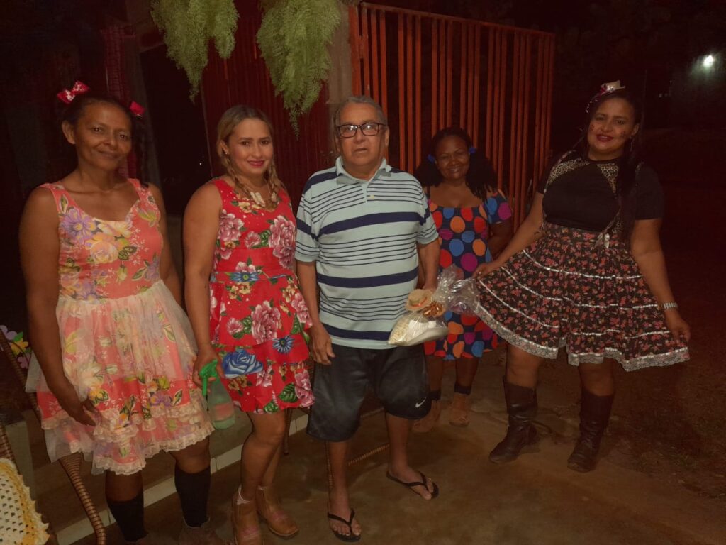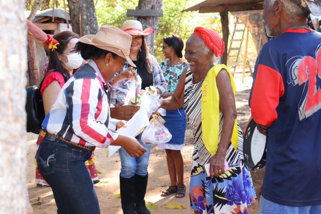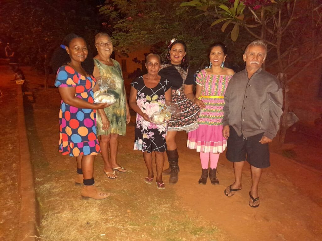Pela manhã, as visitas ocorreram no Quilombo Barra do Aroeira aos 40 idosos moradores e aos integrantes Grupo Sorrir e Dançar. A equipe entregou a cada idoso um kit com diversas comidas típicas das festas juninas, como bolo de milho, paçoca, canjica, dentre outras delícias.