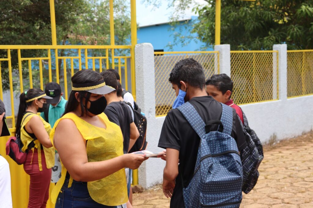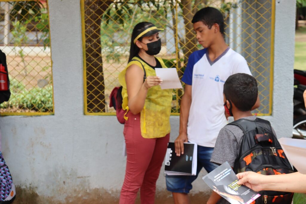Uniformizados para chamar a atenção de quem passava pelo local, com o apoio da Polícia Militar, os servidores entregaram panfletos e falaram sobre o assunto. A ação também foi realizada nas salas de aulas junto aos alunos da unidade escolar.