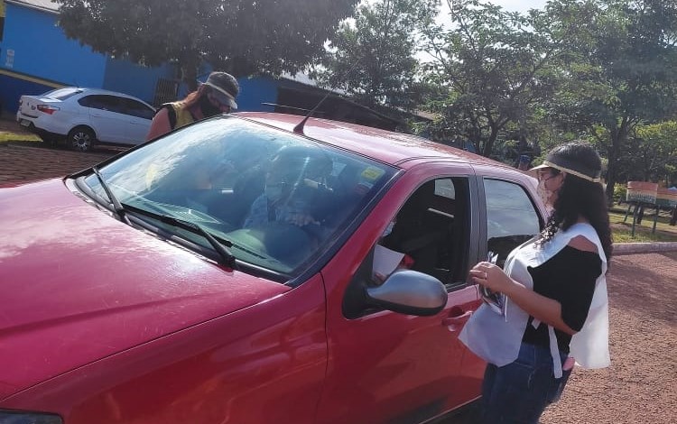 Logo cedo as equipes do Centro de Referência em Assistência Social (Cras), Centro de Referência Especializado de Assistência Social (Creas) e Serviço de Convivência e Fortalecimento de Vínculos (SCFV), se posicionaram em frente à Escola Estadual Manoel Silvério Dourando.